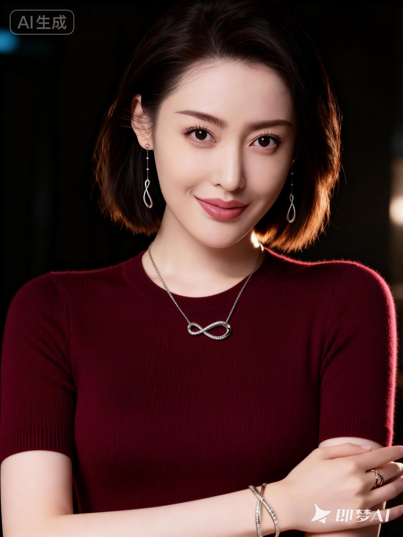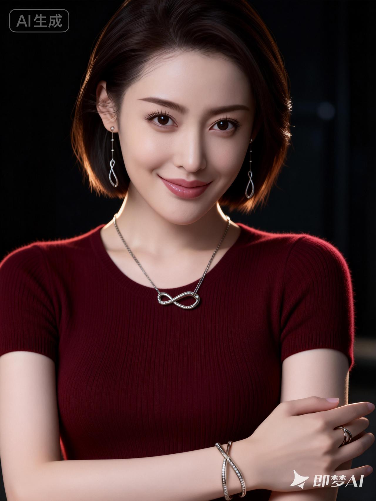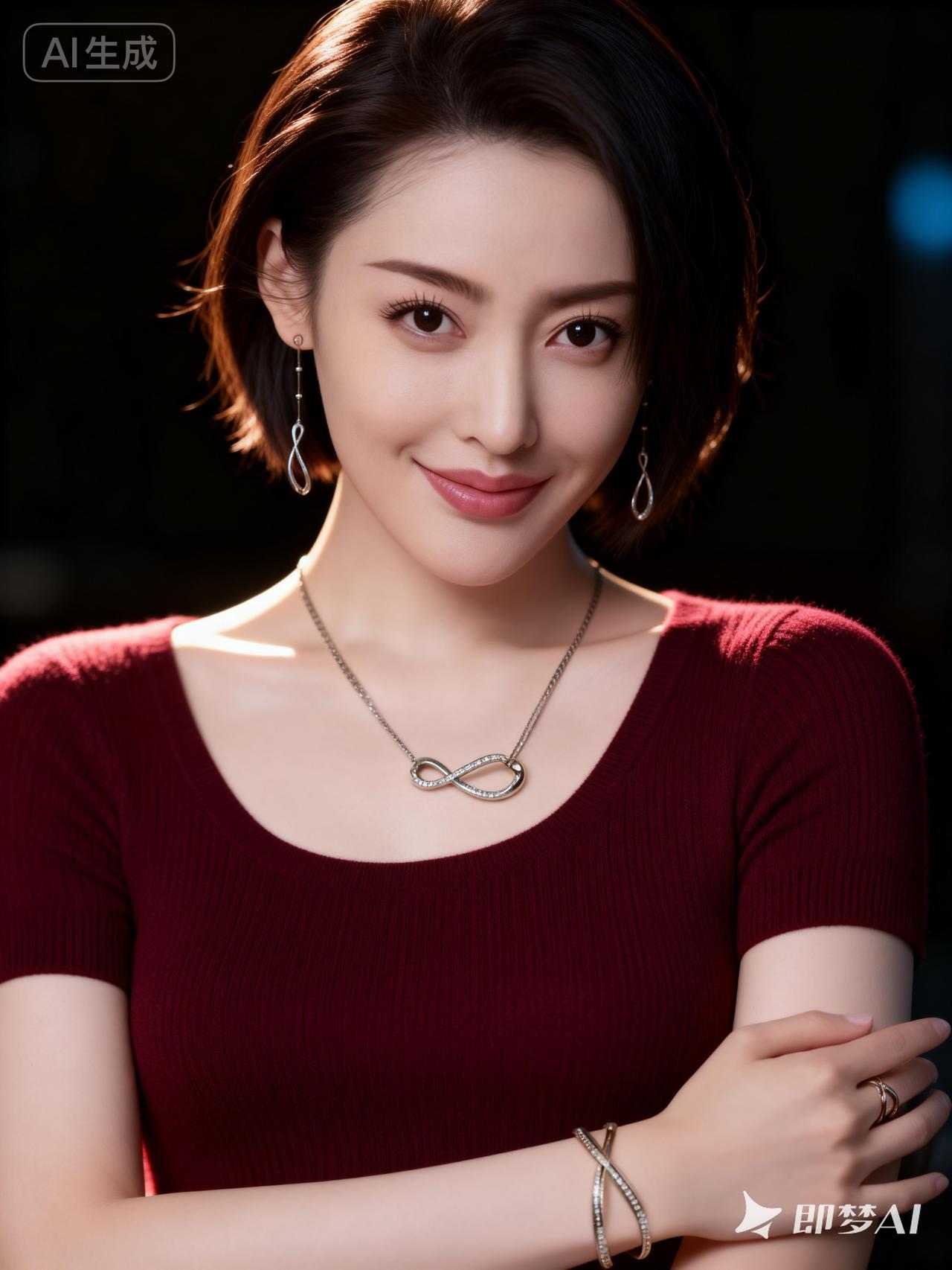 优雅红衣美人,微笑迷人,尽显温柔魅力