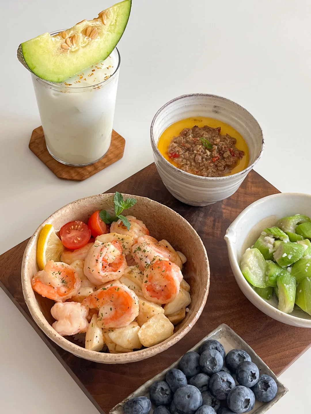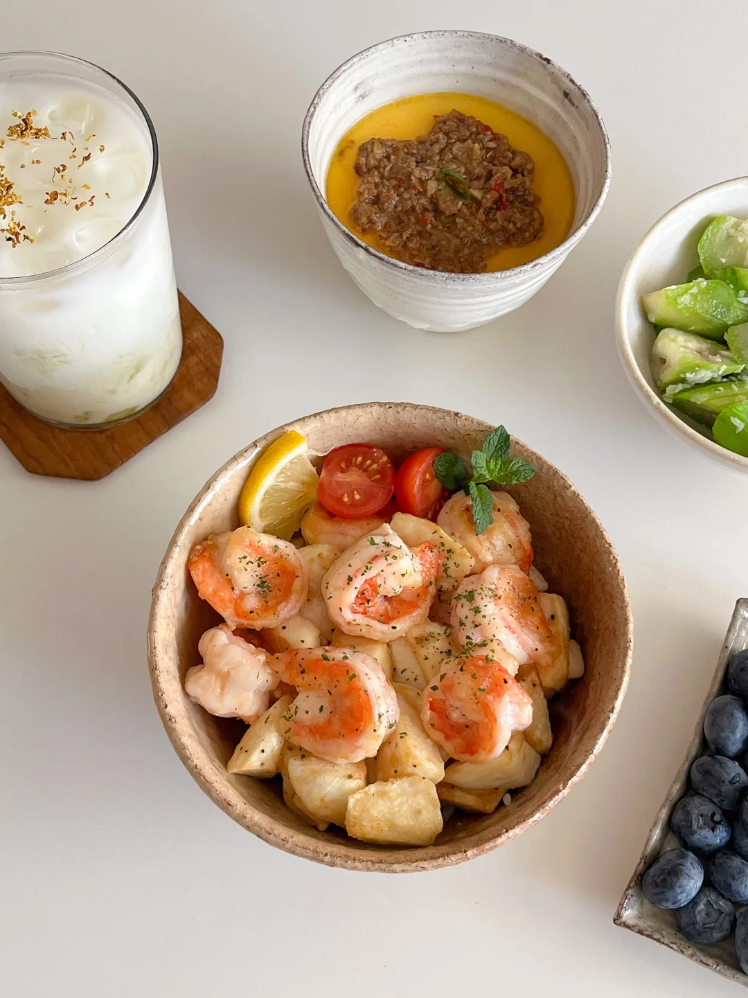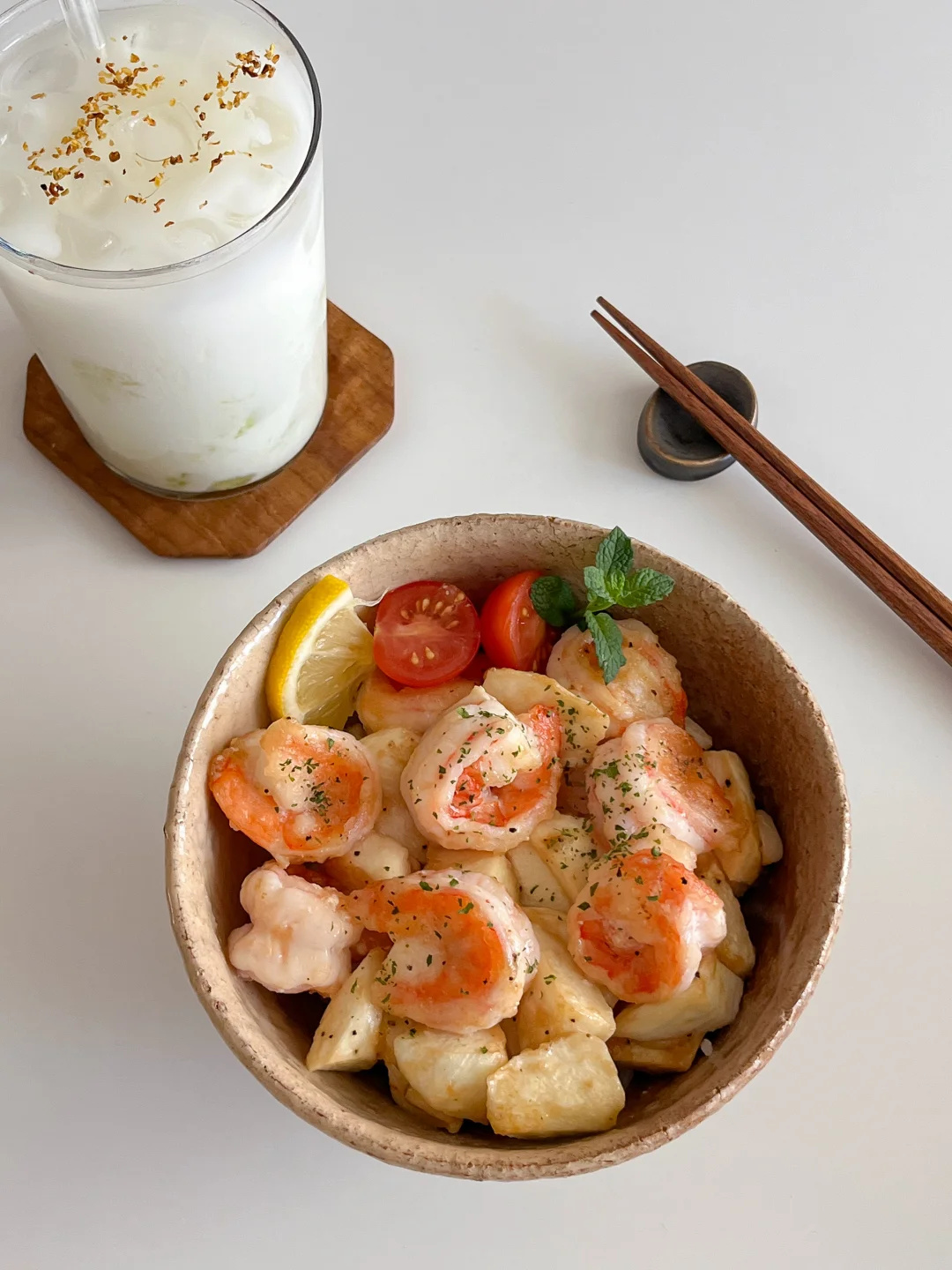 肥嘟嘟的虾去皮 沾上薄薄一层淀粉