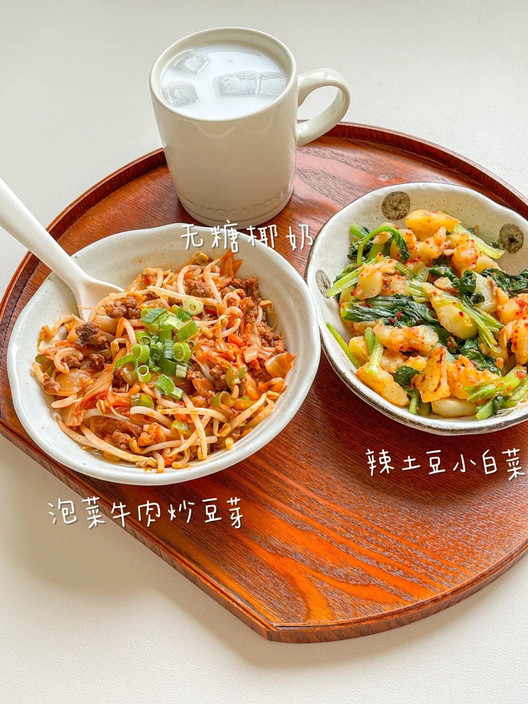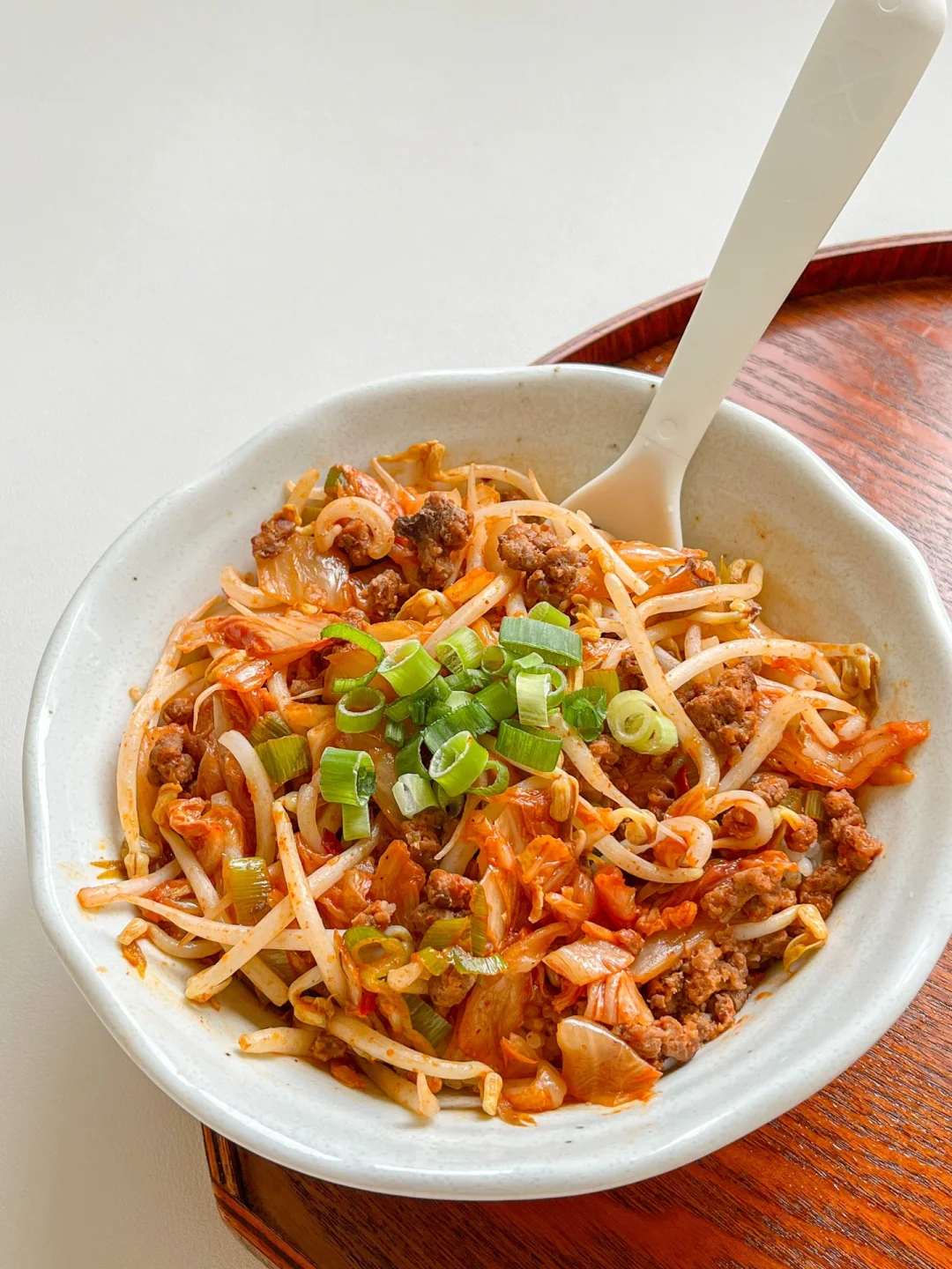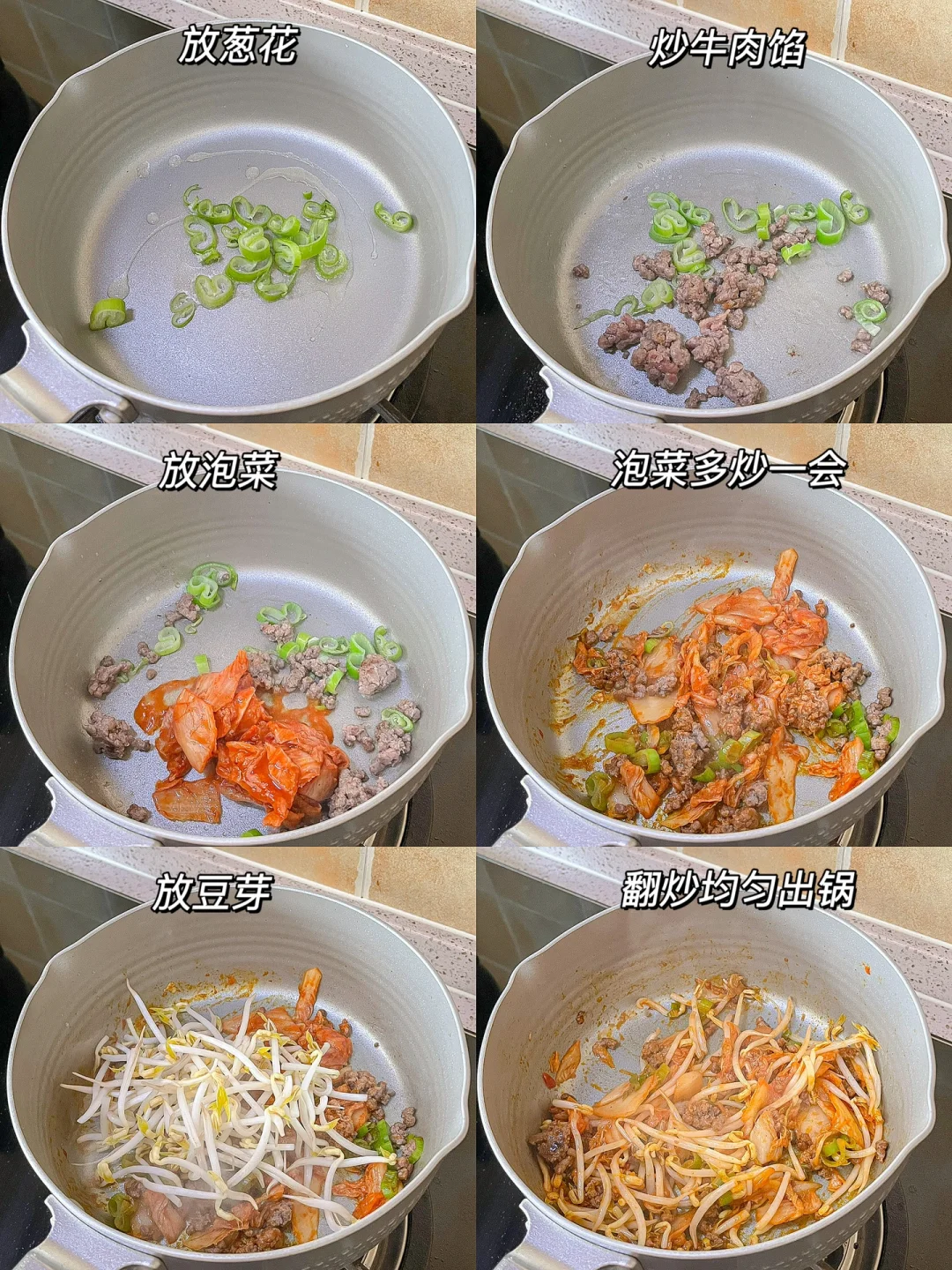 泡菜和豆芽都是脆脆的,用牛肉末代替油脂丰富的五花肉,口感更清爽也低卡,太适合夏天吃了!泡菜本身有调味,我就没有再放盐,感觉这些一起做泡菜炒饭也非常好吃~