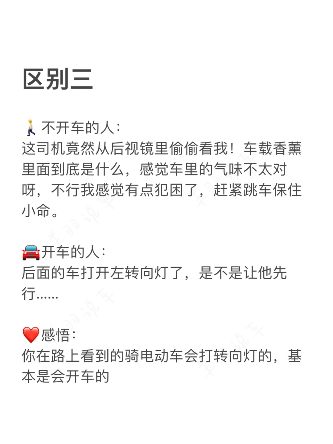🚗很多人开车在路上总会遇到一些不守交通规则的人,殊不知,没开过车和开过车的人思维差别真的很大,看看第几条说中了。