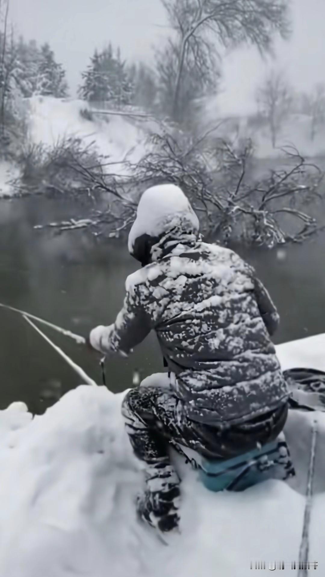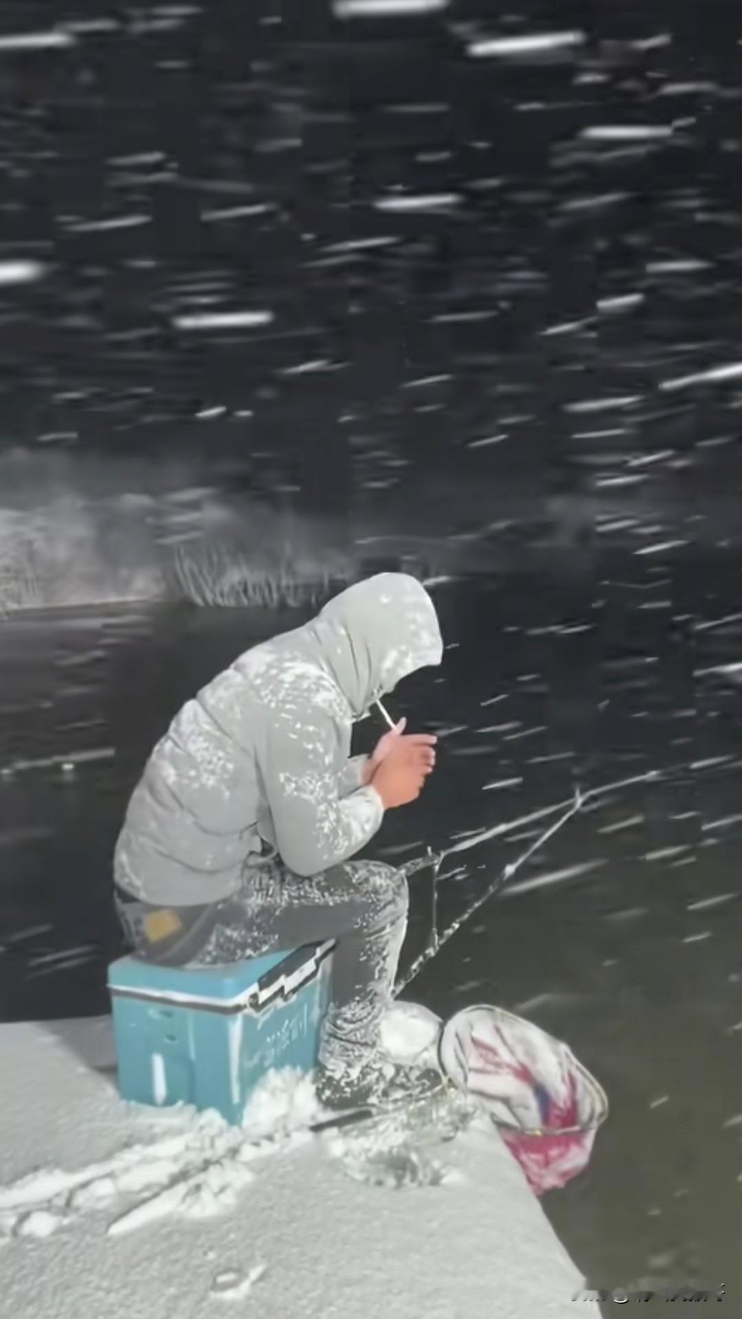 冬天的钓鱼人太疯狂了