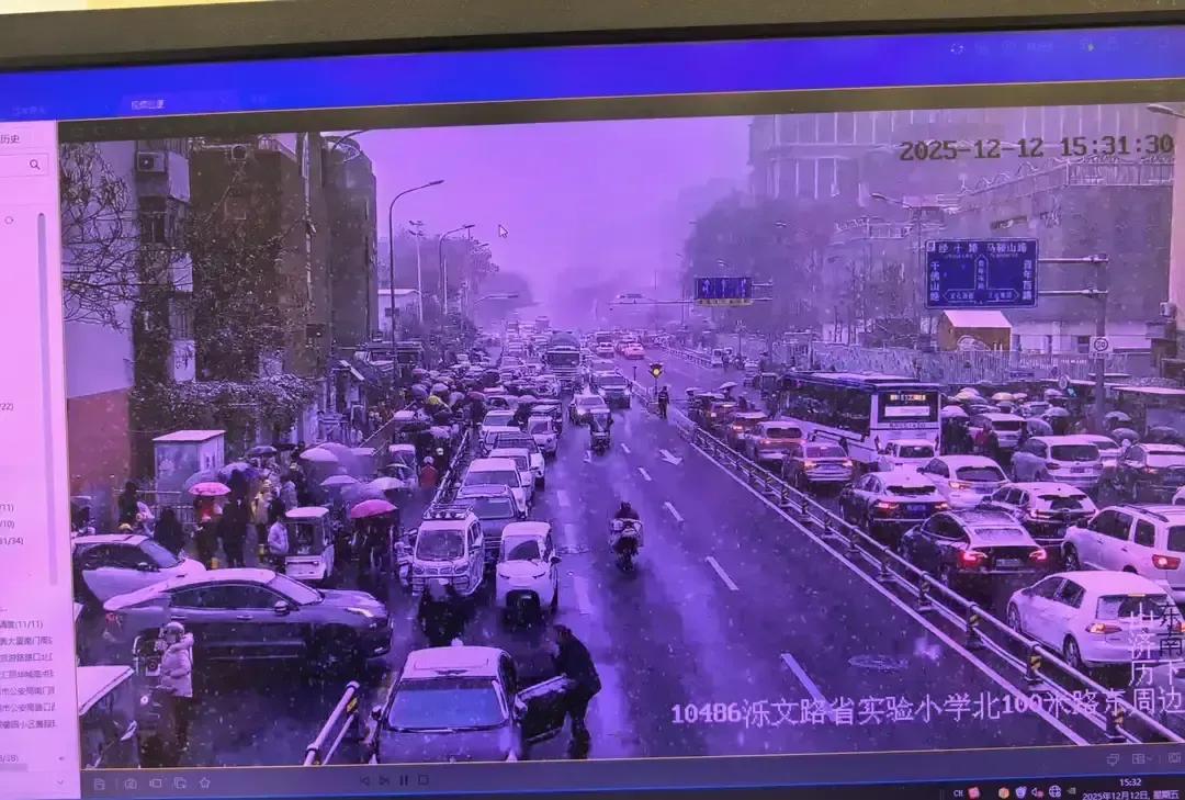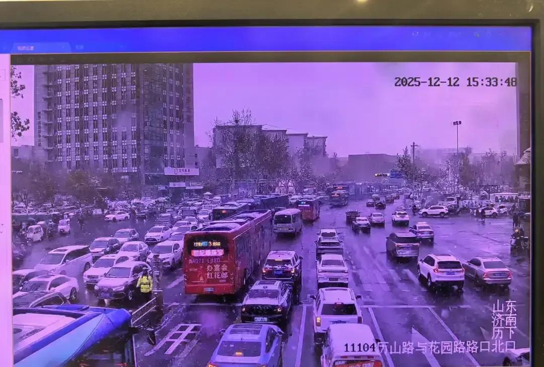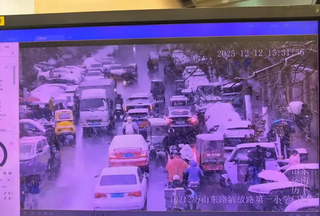济南下雪那天,我刷到一段视频,历下大队民警站在文化东路小学门口,帽檐上全是雪,手里小旗子挥个不停。 雪下得正急,路滑得跟镜面似的,接送孩子的车一辆接一辆,他扯着嗓子喊即停即走,嗓子都劈叉了。 十五秒的视频,我来回看了三遍,雪水顺着他的袖口往下滴,鞋面早就湿透,人却像钉子一样钉在马路中间。 家长说放学时间提前了,交警一点没乱,临时把双向四车道改成循环单行道,小车调头口硬是用身体挡出安全岛。 我闺女就在隔壁燕山小学,那天她回来说叔叔把她和同学手拉手送到人行道,帽子都白了。 雪大路滑谁都烦,可看到有人替我们顶着,心里一下就踏实。 风雪里站得最稳的永远是他们,普通人能做的就是配合减速,别按喇叭,给孩子让出安全,也给坚守的人一点温暖。