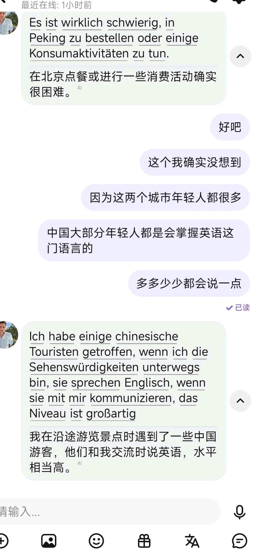老外:北京会说英文的人太少了! 在HelloTalk跟德国小哥聊天的时候,他跟我说,相对比北京,他更愿意在上海游玩,我以为是因为魔都的新鲜事物多而吸引了老外,没想到他是因为上海会说英文的,中国人比较多而喜欢上上海 他跟我说在北京游玩的过程当中,他需要无时无刻拿出翻译器来跟中国人沟通,而在上海他几乎不怎么需要翻译器 我说为什么相对比中国其他城市上海的外国人更多,原来是因为感觉上海人各个都会说英语啊! 认识外国人上海北京找外国人聊天宝藏APP外国人聊天的app免费和外国人聊天的软件