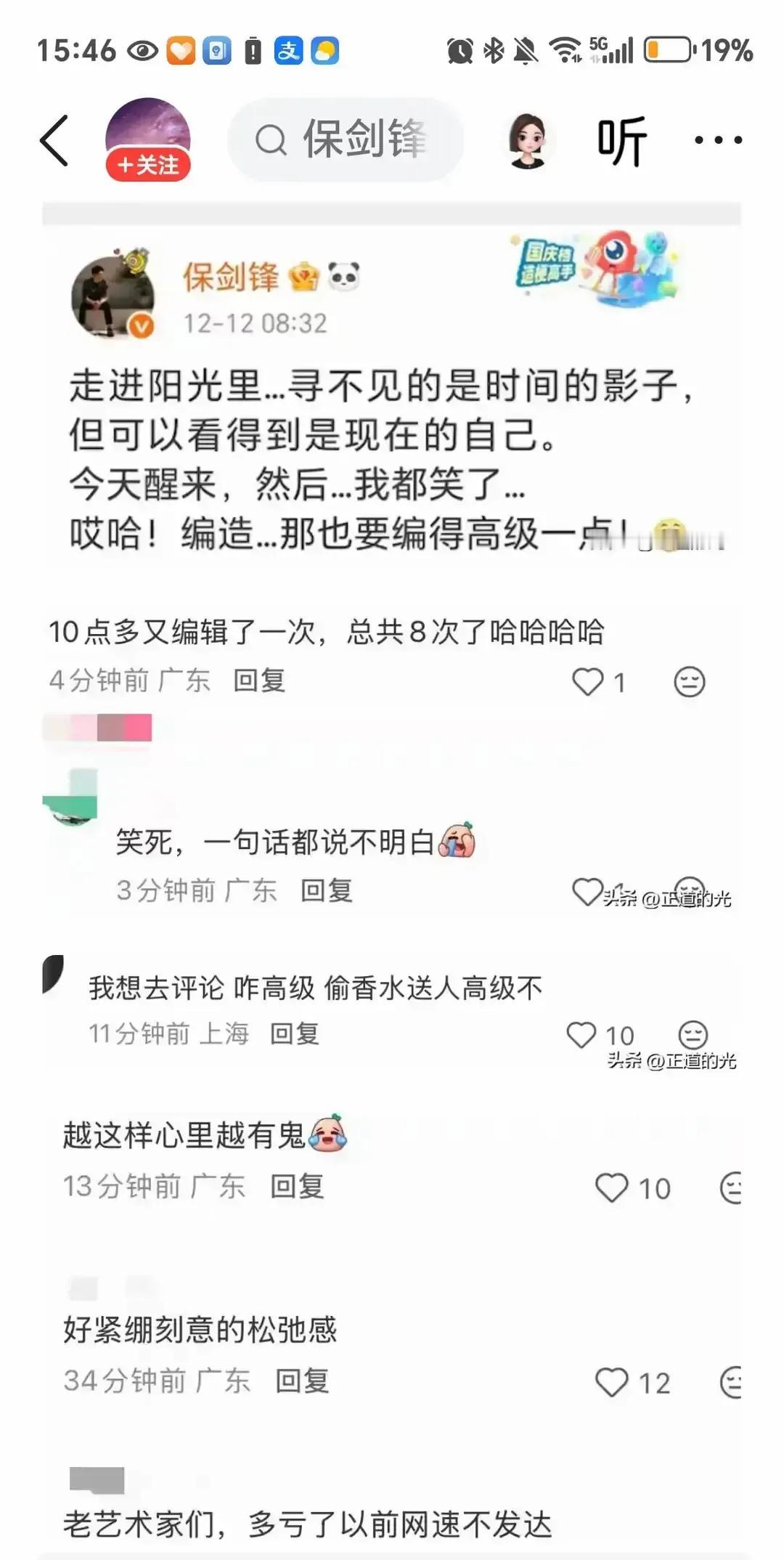 保剑锋深夜发了一句“有人拿旧情换流量”,配图是空书桌。 我刷到立马想到黄慧颐前阵在直播间边哭边提《十八岁的天空》,说当年姐弟恋被辜负。 戏里她喊他老师,戏外她大他几岁,两人偷偷好了七八年,最后还是散了。 现在她靠直播吃饭,他靠正剧稳人设,一个想翻红,一个要护家。 要我说,二十年前的事谁对谁错早说不清,观众只记得古越涛和夏清心,真把私事摆上台面,滤镜碎一地,青春剧秒成狗血番外,谁也没捞着好。 旧账翻一次是怀念,翻多了就是生意。 观众看的是情怀,不是官司。