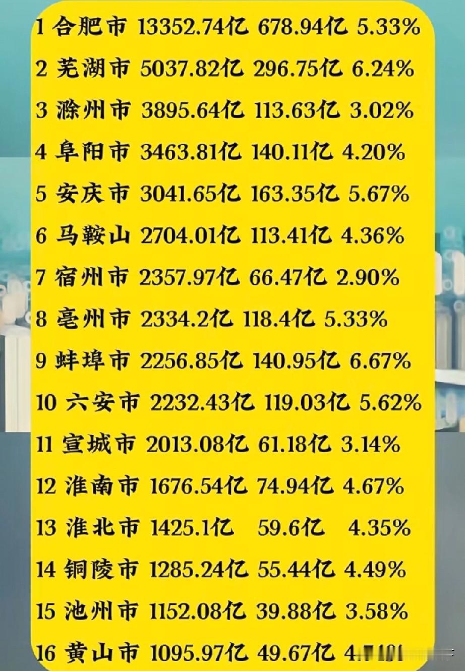 安徽皖中合肥,六安,滁州,安庆4市人口经济占比均超全省1/3以上 安庆市官方明确