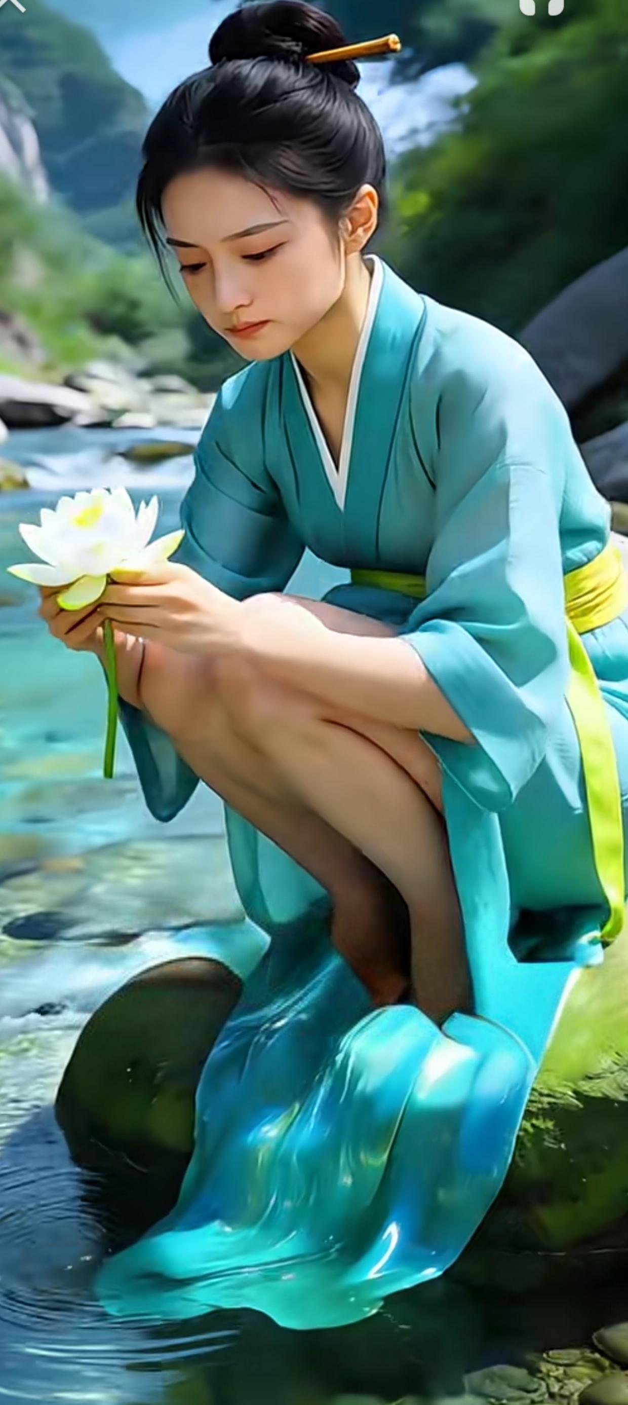 绿意盎然间,佳人倚树思。
