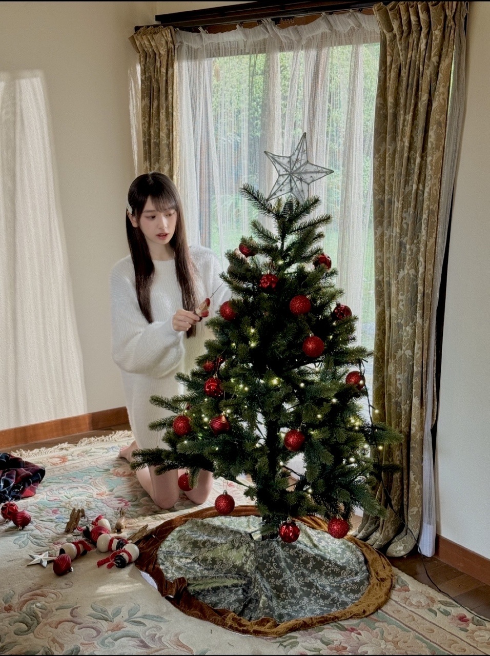 矢田萌華「秋田にある実家のつくりと似ているからなのか、入った瞬間から安心感が。なんだろう、分かりやすく例えるならば、おばあちゃんの家に行った時のあの感じ??んー、私が持ち合わせている語彙の少なさゆえに、この素敵な質感が伝わらないことが悲しいです。ふわふわクリスマス、そして可愛いクリスマスツリー!!実家がツリー飾らない派閥のおうちだったので、人生で初めての飾り付けに挑戦。」