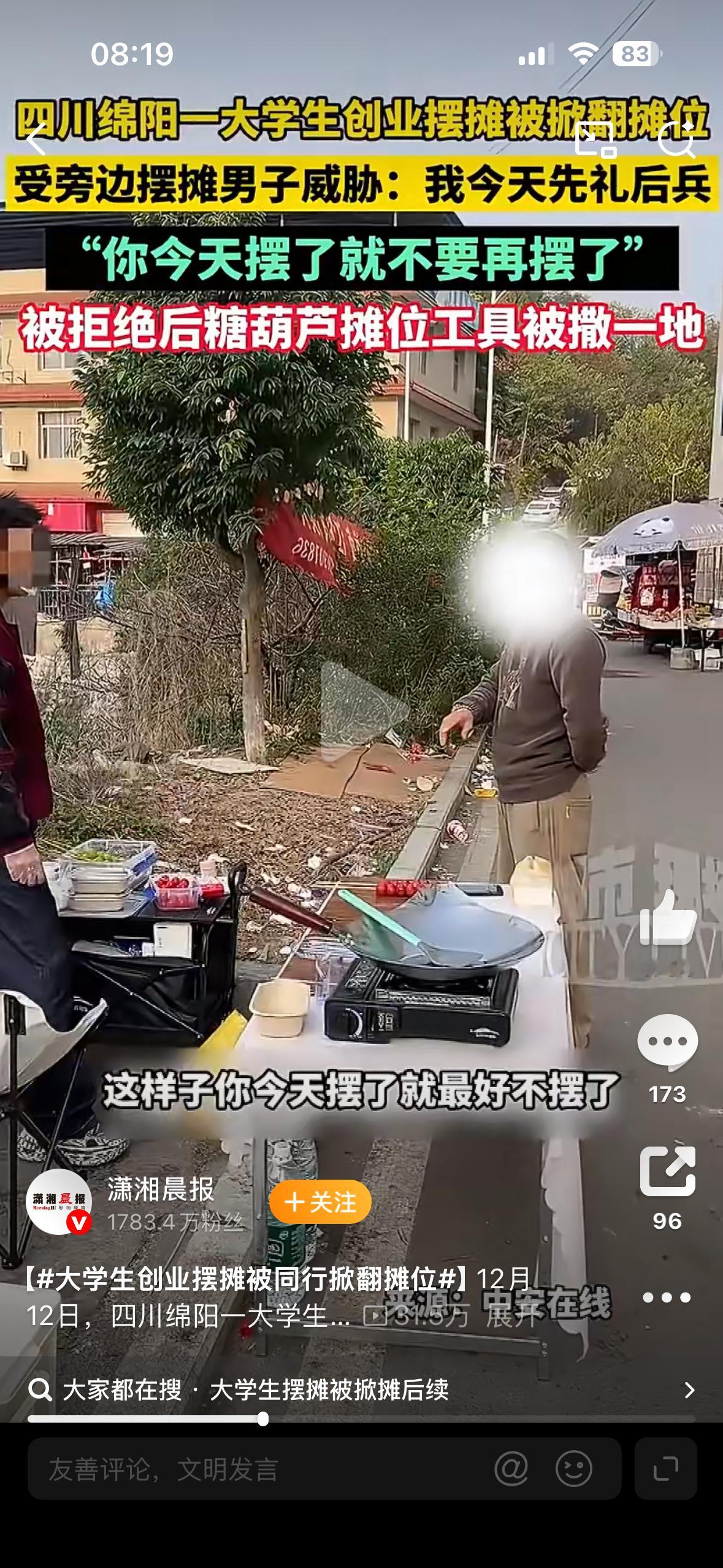 这也太嚣张了吧还先礼后兵?大学生创业摆摊被同行掀翻摊位