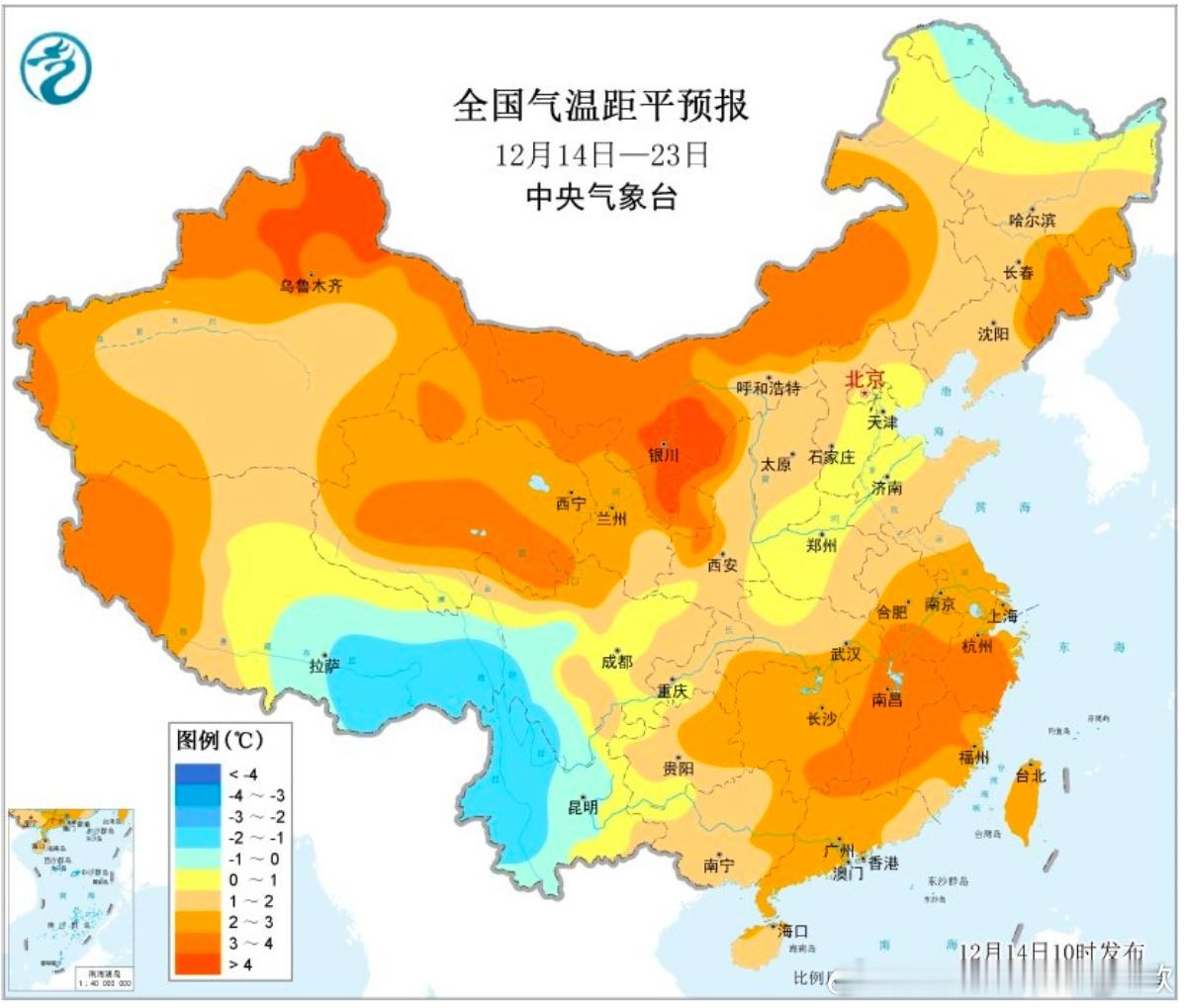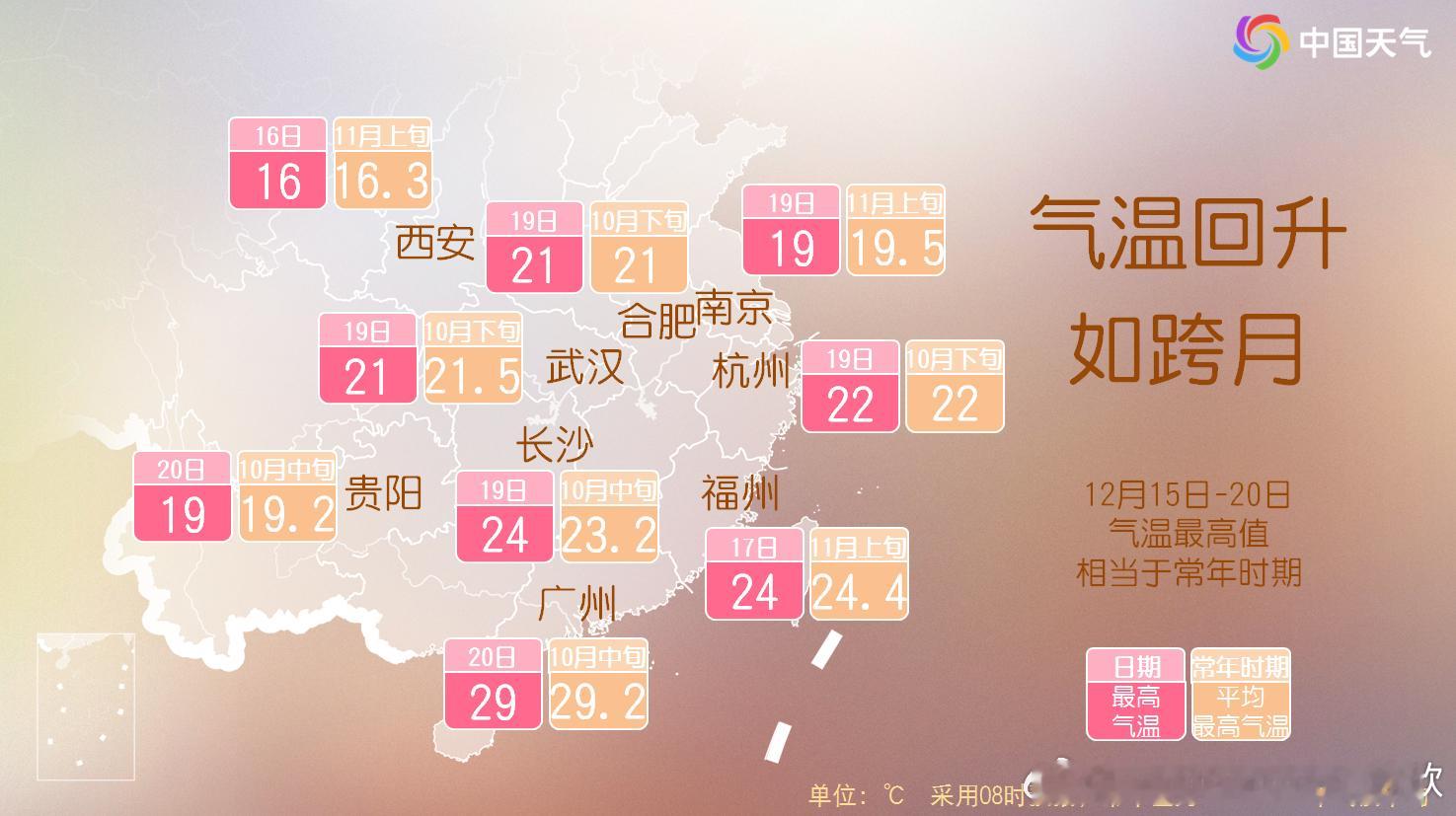 【回暖】近期刚被寒潮打回正常甚至偏低的气温,未来又会转为偏高。不少地方白天温暖程度,不像12月,更像11月甚至10月。比如长沙19日最高预计24℃,广州20日最高预计29℃。