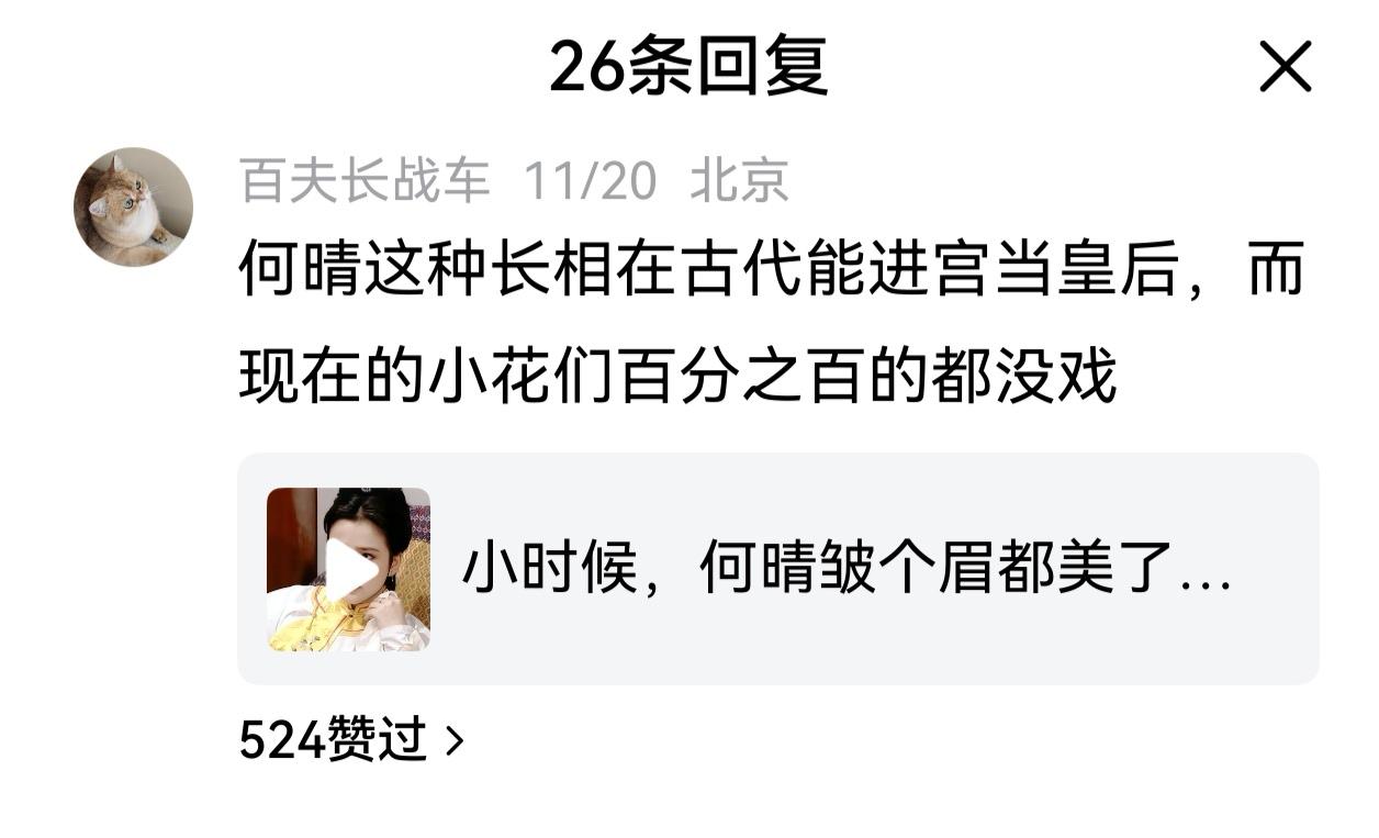 世事无常啊!何晴老师去世了,前几天我还评论她呢。 12月13日,著名演员何晴在北京安然离世,享年61岁。 前几天我在评论里说,“何晴这种长相在古代能进宫当皇后,而现在的小花们百分之百的都没戏”,这条评论得到了很多网友的认可,意外的是今天就看到了她去世的消息。 哎,人生无常啊!大家都好好珍惜自己,也珍惜别人吧。
