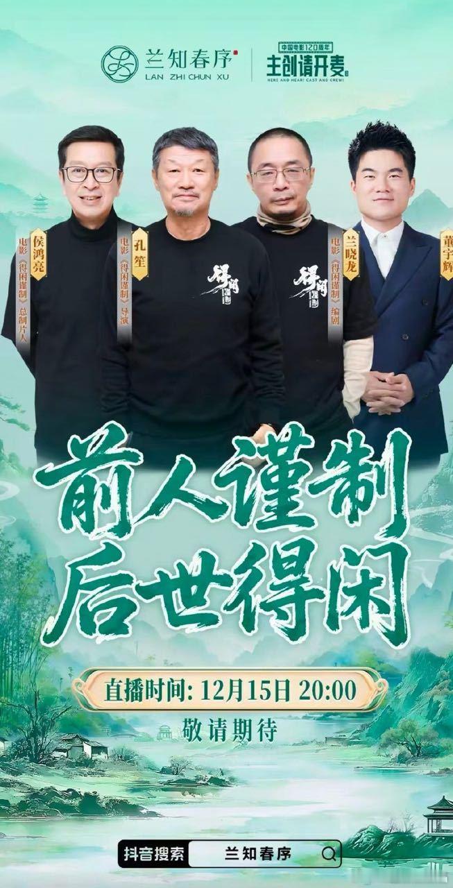 前人谨制,后人得闲。侯鸿亮、孔笙和兰晓龙12月15日去董宇辉直播间宣传电影《得闲谨制》!这个👍