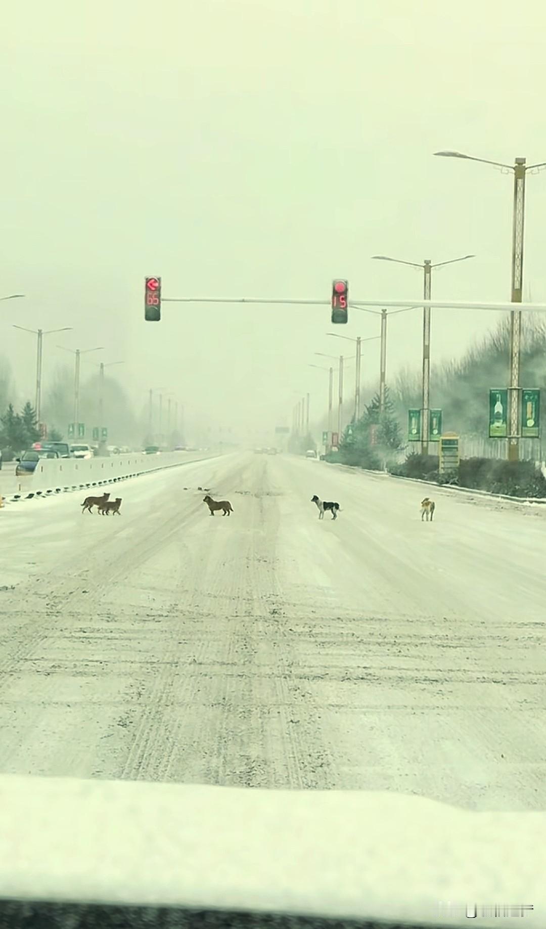 “太有灵性了!”内蒙 古,一女子雪天开车,等待红绿灯时偶遇暖心一幕:一排狗狗整齐站在人行道,居然主动隔开距离,乖乖等同伴一起过马路!女子急忙将这治 愈的画面拍下来发到了网上。网友直呼:像极了小时候手拉手过马路的样子。 以前只看过我们人类小朋友们会整齐过马路,谁能想到这么多只狗狗居然能将整齐排列“达成共识”! 根据上游新闻12月13日报道,这件不可思议的事,就发生在十字路口处。 女子透露,当时正是大雪天,远处雾茫茫一片,她正等着红绿灯,忽然发现人行道上站着三只狗狗,她正好奇狗狗为什么站在马路中间,结果扩大视野一看,居然有5只狗狗。 并且这些狗狗排成一排,就连间距都差不多远,女子正奇怪狗狗为什么会这样“拦路”,没多大一会才发现,它们竟然在等着同伴过马路,而且顺序居然是最里侧的先在它们身边走过去,然后一只一只的跟在后面,集体过了马路。 该说不说,这条马路属实很宽,如果是狗狗单独过,肯定有难度,于是乎才集体想出了这个好办法,它们看不懂什么红绿灯,只知道,一起站在那里,车辆就会停下来,让它们安全通过。 女子将视频发到了网上,还说:“天气虽冷,温暖人心。” 有网友说:太有灵性了,四个车道一个车道一条狗狗,剩下一条站在左右车道中间,任务分配的真到位! 也有网友说:狗狗们不仅很有情义,还蛮有秩序的,估计刚才另外一边车道,他们就是这样安全通过的。 说真的,这群毛孩子让人看了太暖心了!大雪天里的这份默契和情义太难得了。它们看不懂红绿灯,却懂得等一等同伴,它们不会说话,却用行动把团结两个字做得明明白白。 有时候真觉得,动物的世界简单又纯粹,足够治 愈一整天的好心情!