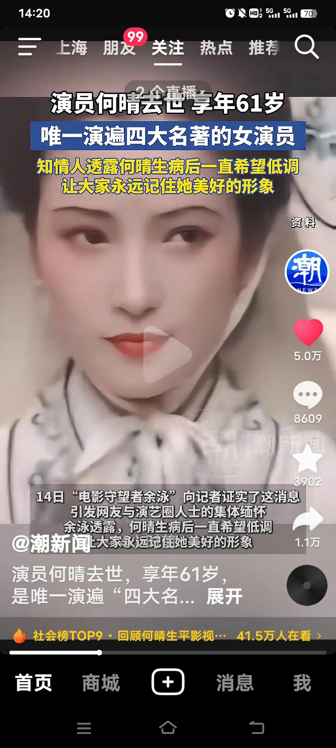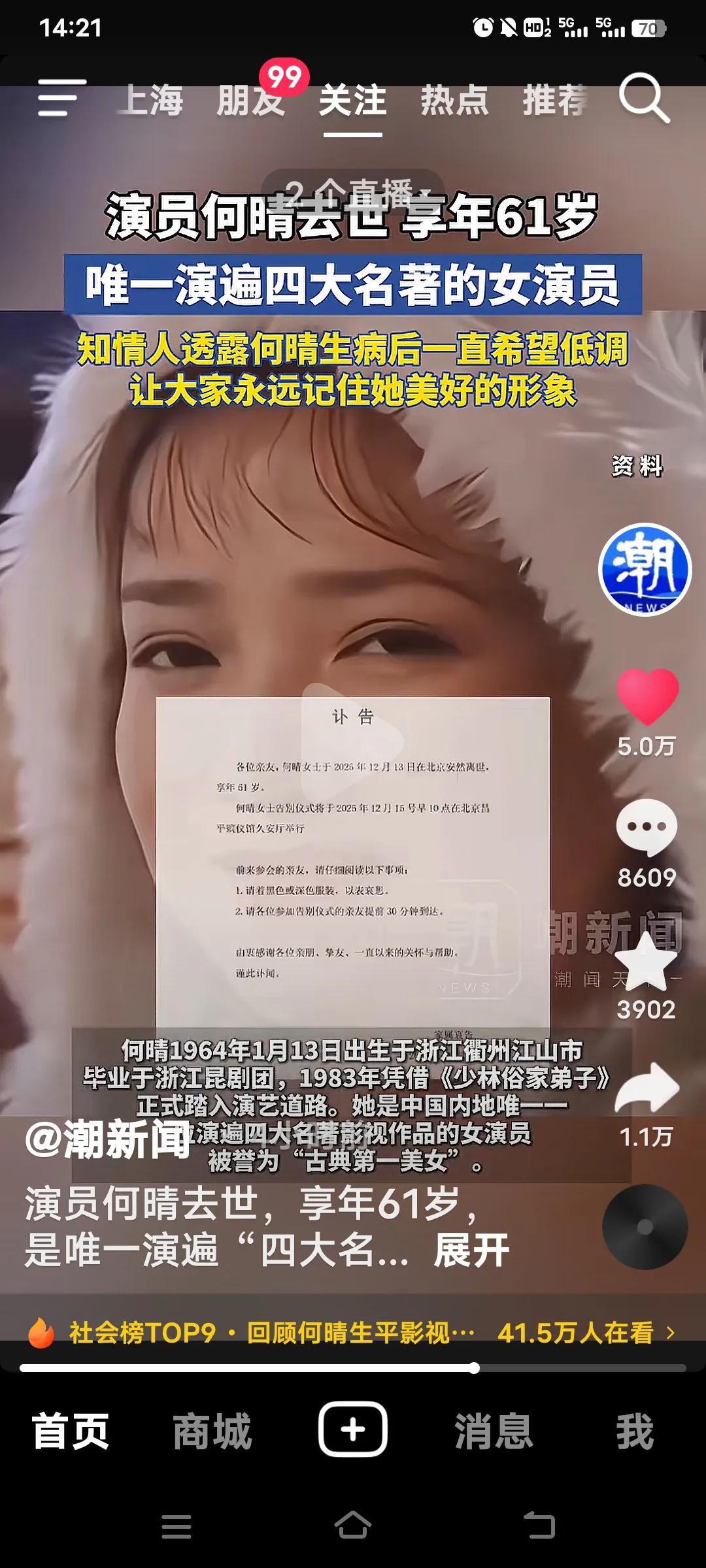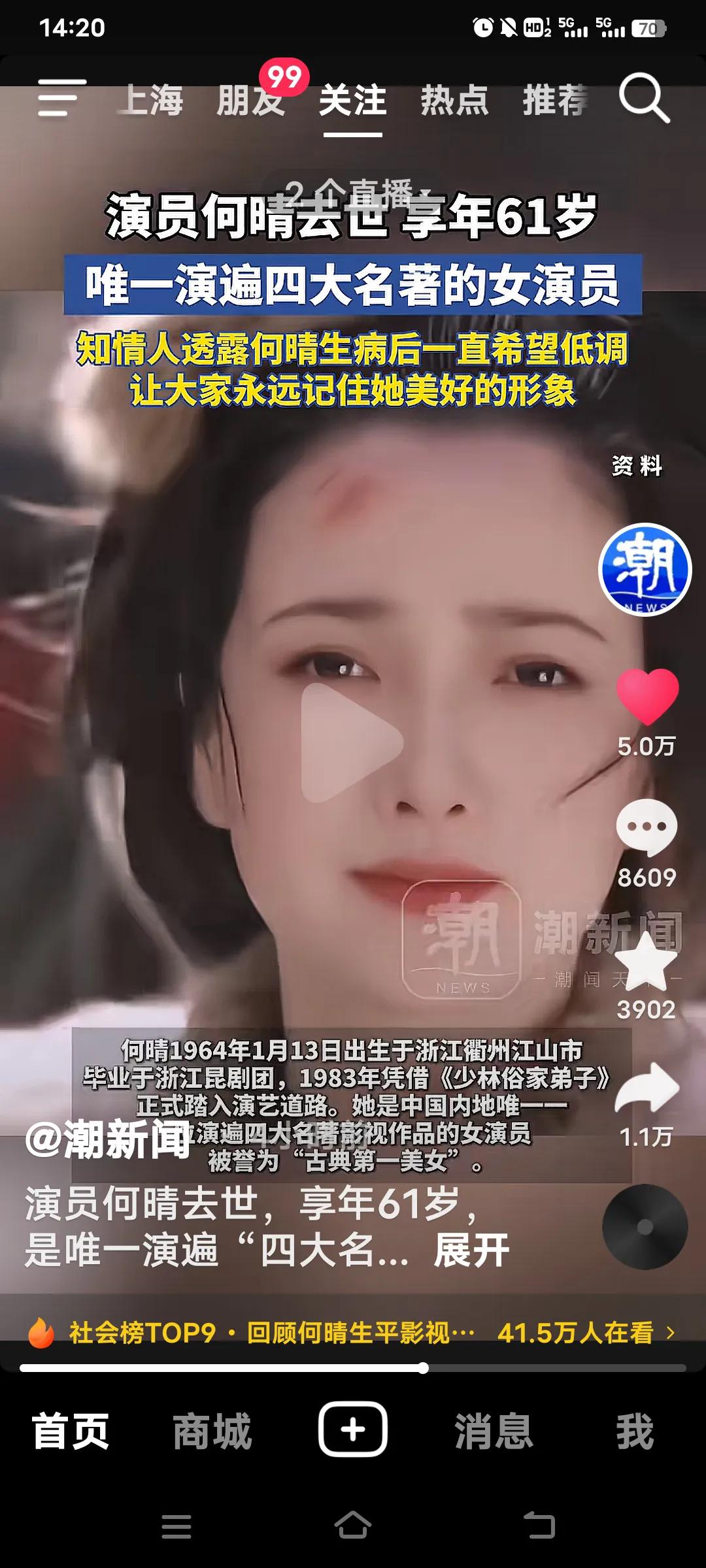 又一位明星离世,着实令人感叹人生的无常。何晴参演过众多电视剧,虽说并非主角,却给观众留下了深刻印象。年仅61岁,以如今的生活水平,加之她身为演员,若不是患病,又怎会如此匆匆离去? 本应是安享晚年的时候,老天却无情地夺走了她的生命。据说她在北京离世,患病期间她希望保持低调,想让大家记住她美好的模样。 明星表面光彩照人,坐拥财富与名气,可在病魔或意外面前,生命同样脆弱不堪。就如科比·布莱恩特,一场直升机坠毁事故,让这位篮球巨星骤然陨落。还有乔任梁,因抑郁症终结了年轻的生命。 不过换个视角,人生也不乏美好。我们可以品尝各地美食,领略不同风景,与家人朋友相伴左右。明星的离世只是在提醒我们,要珍惜当下,让每一天都过得充实,去做自己想做的事,如此,人生便有了意义。 何晴照片 许诗晴扮演者 何晴古装戏
