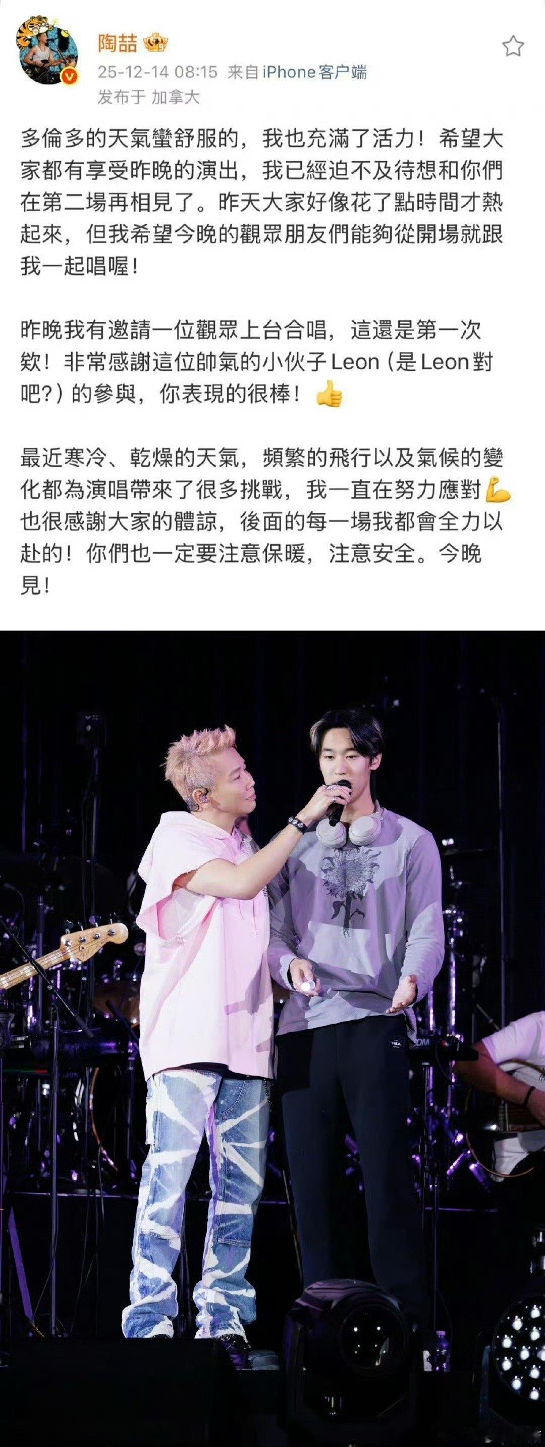 陶喆随机选了位观众合唱 陶喆把演唱会开成了大型圆梦现场!随机选人合唱,递话筒的细节满分。小哥在台上抱着偶像,眼里全是星星,这场面谁看了不羡慕?心里真有点不得劲儿了,下轮巡演门票我必须抢到!