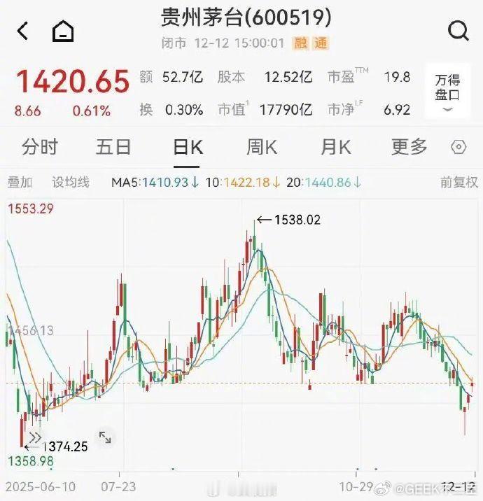 经销商称茅台1天上调4次价格有深圳经销商透露,2025年飞天茅台酒的价格在一天之内上调了4次价格。12月13日傍晚,拿货价格为1580元/瓶。北方某省的渠道经销商亦证实了这一点。