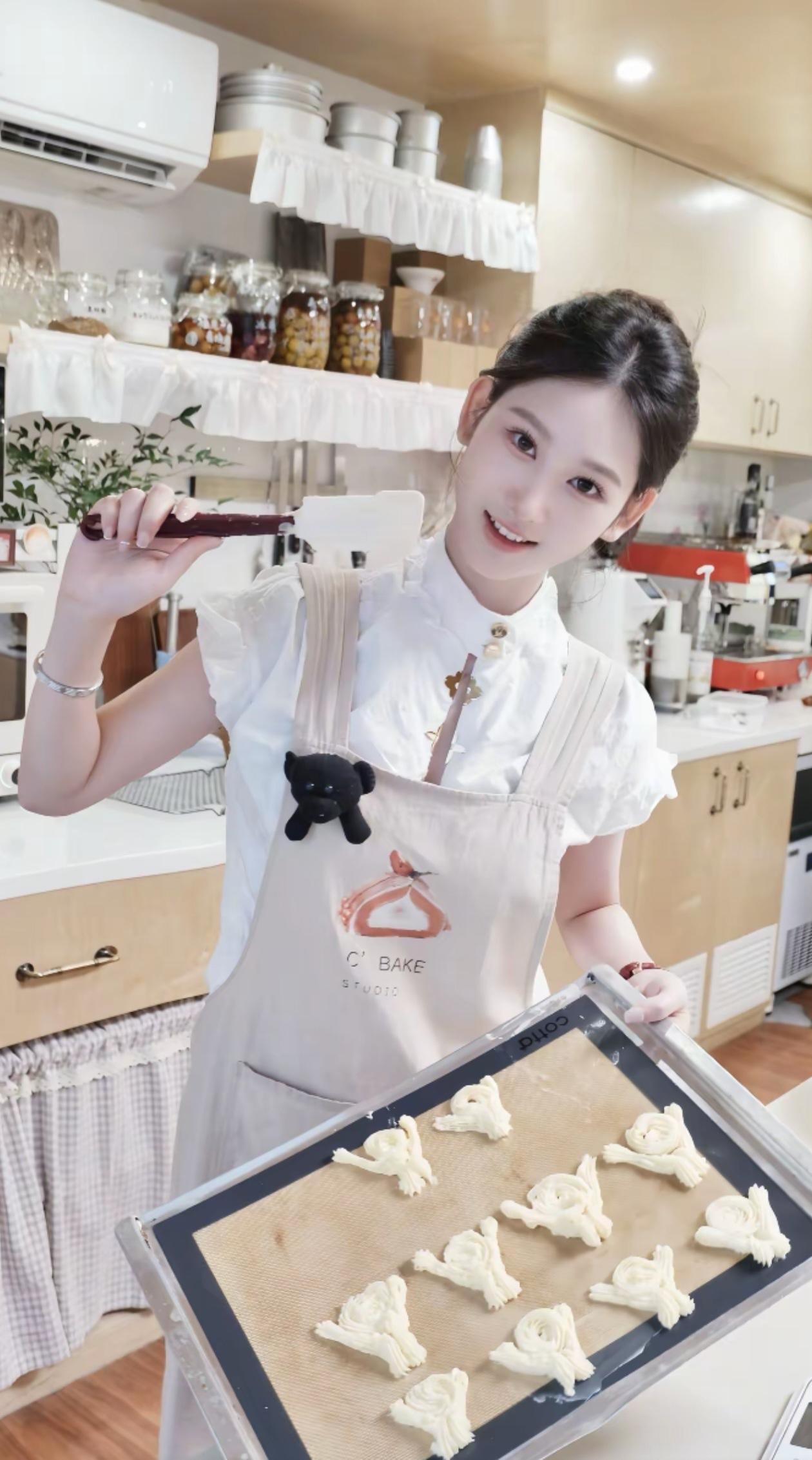 温柔甜美的少女,浅蓝色毛衣,自然妆容,微笑迷人。