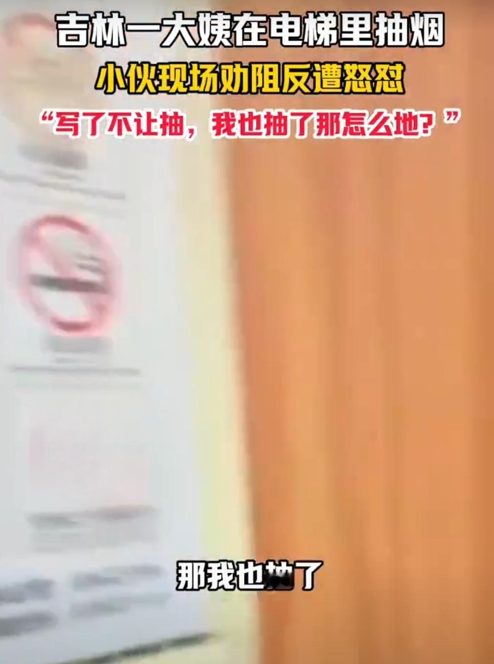 电梯吞云吐雾:一句“能怎地”戳破多少文明伪装? 近日,吉林某小区电梯内发生的一幕引发热议。一女子在明令禁烟的电梯内点燃香烟,面对小伙子的善意提醒,竟反呛道:“写了不准抽烟,我就抽了能怎地?”态度嚣张,令人愕然。 狭窄的电梯厢内,烟雾迅速弥漫。女子吞云吐雾间,将明确的禁烟标识视若无物。当旁人出于公共健康与安全出言劝阻时,换来的不是歉意与熄灭的烟头,而是一连串理直气壮的谩骂。那句“能怎地”,不仅是对规则的公然蔑视,更是对公共秩序与他人权益的粗暴践踏。 此事虽小,却折射出不容忽视的社会病灶。它首先暴露了个别公民规则意识的严重缺失。规则是文明社会的基石,禁烟标识是公共空间内清晰的文明标尺。视规则如无物,将个人 momentary 的便利与任性凌驾于公众利益之上,本质上是极端的自我中心主义。其次,这反映出部分人面对错误时非理性的防御与攻击心态。善意的提醒本是可贵的“微观正义”,是维护公共环境的积极力量,却遭遇如此激烈的对抗,这无疑会寒了友善之心,助长“多一事不如少一事”的冷漠。 公共空间是检验社会文明的显微镜。电梯作为密闭的公共区域,其环境关乎每个人的健康与安全。女子的行为,侵害了他人拒吸二手烟的健康权,也埋下了消防安全隐患。更值得警惕的是,这种“我就这样,你能奈我何”的戾气,正污染着社会的和谐氛围。 构建文明的公共生活,需要刚性的规则约束,也需柔性的道德自觉。对于此类行为,物业等管理方应切实履行劝阻与处罚责任,让规则“带电”。而我们每个身处公共空间的个体,亦需常怀一份敬畏之心——对规则的敬畏,对他人的敬畏。唯有当“不能怎地”成为共识,当遵守规则内化为修养,我们才能共享一个清新、友善、有序的公共环境。别让一支任性的香烟,灼伤了文明。