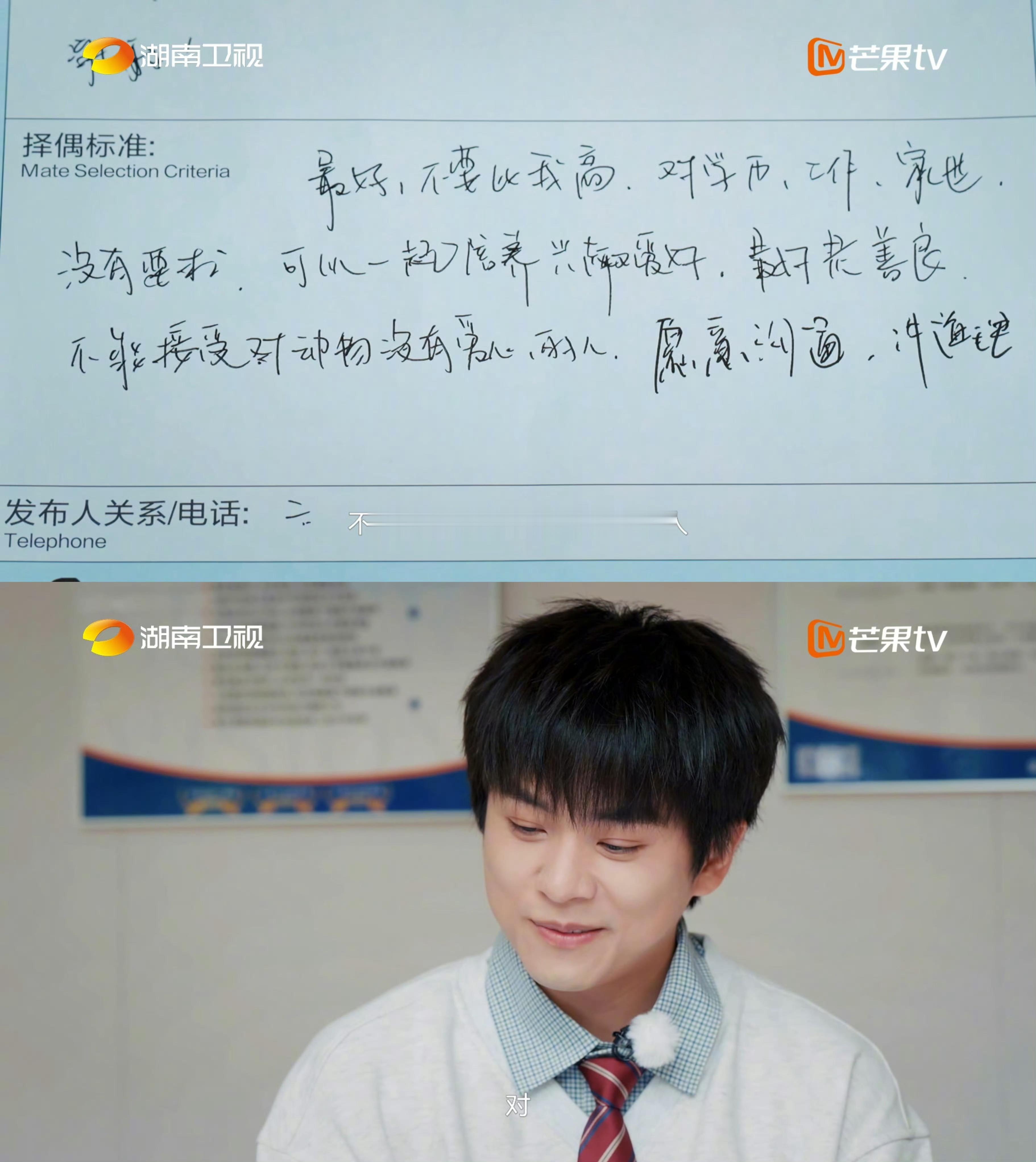 武艺择偶标准首条不要比他高武艺填写择偶表时耿直写下“不要比自己高”,主打一个有啥说啥不藏着掖着,这份实在感也太可爱了!!湖南卫视背后