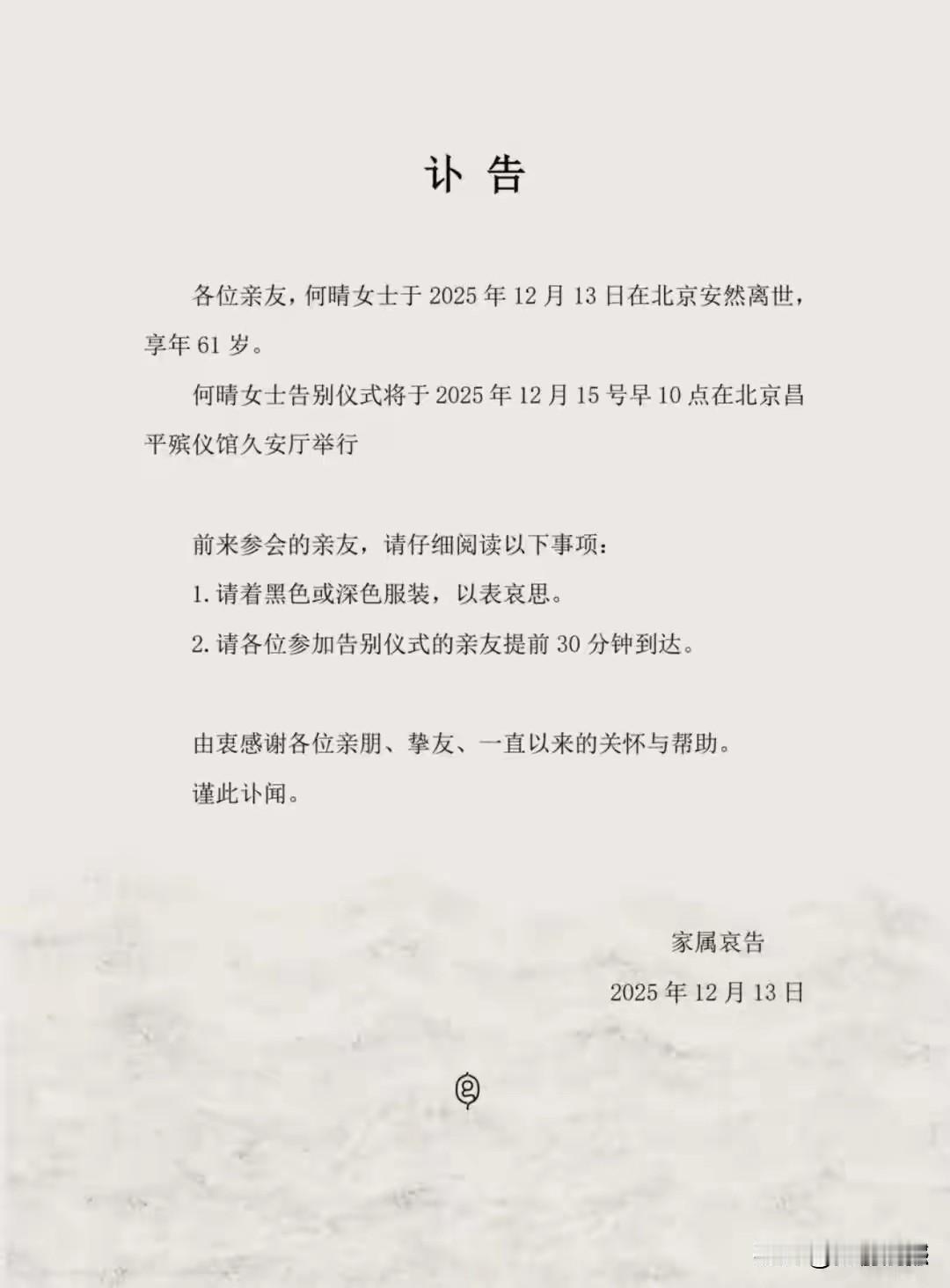 何晴的离去,让人痛心,刚刚61岁的年龄,正是事业有成、安详晚年天伦之乐的好时候,她的生命却画上了句号,她的美丽端庄,她的艺术才华,她的事业成就,永远让粉丝怀念!