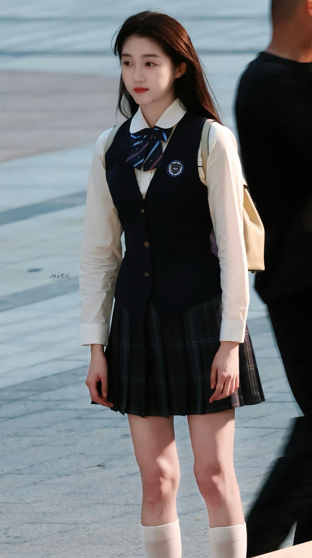 但凡张天爱身上有一点赘肉都穿不了这个衣服
