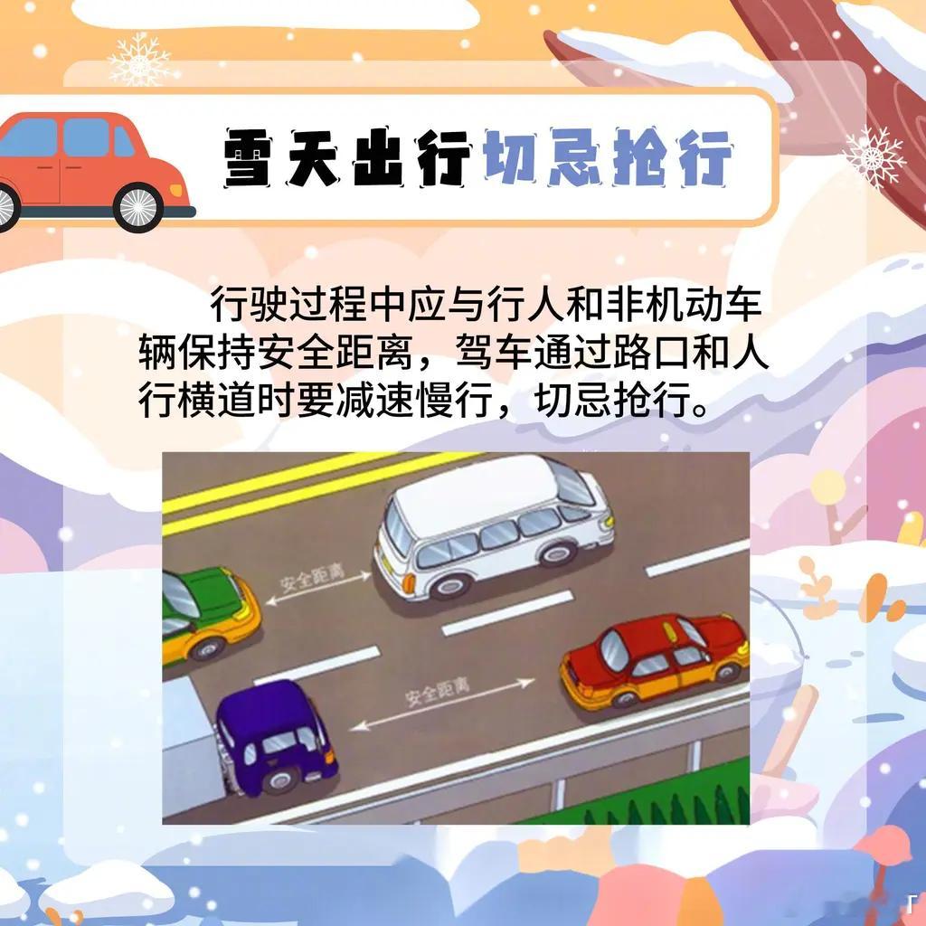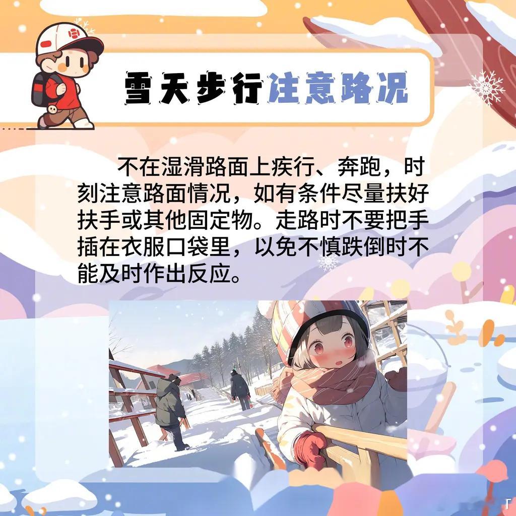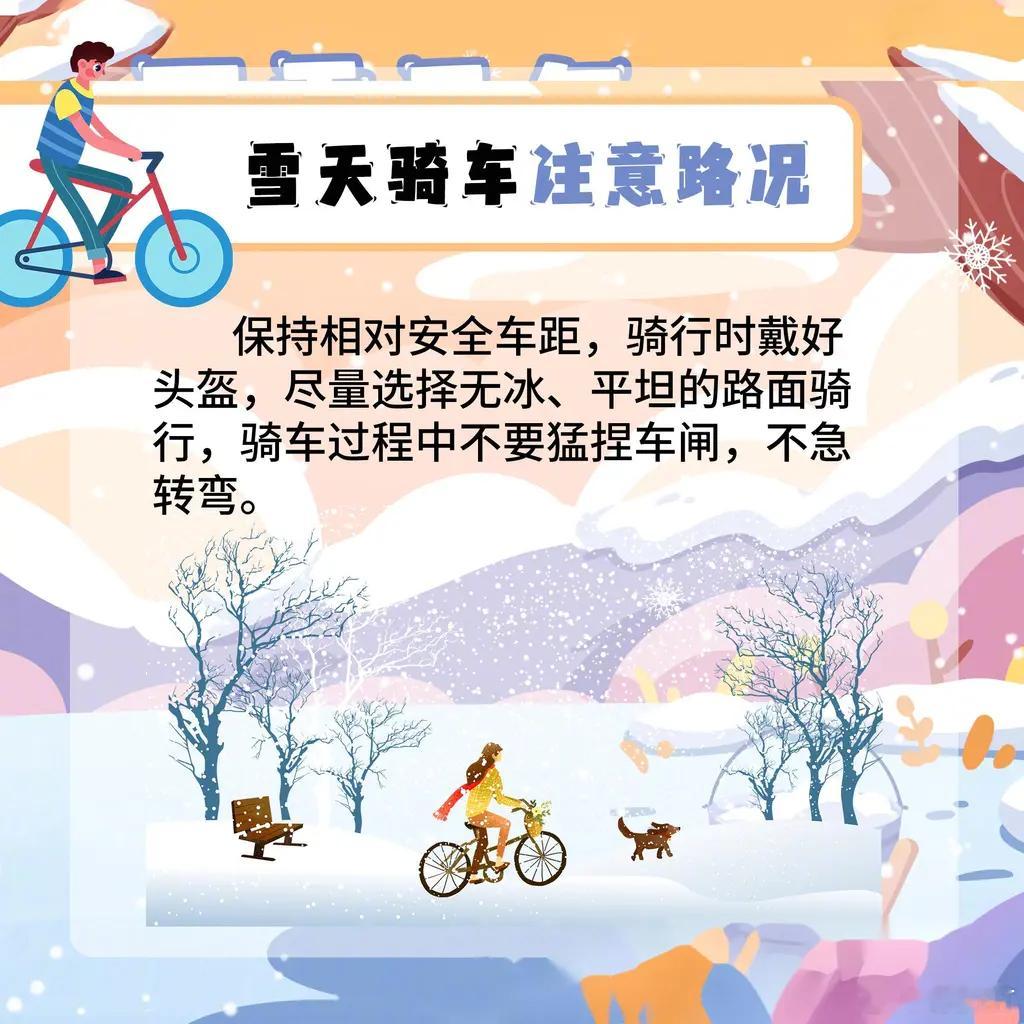 提醒:平安过冬,这些细节需格外注意!雪天出门请注意!驾车时请减速慢行,避免紧急刹车,检查并保持适当的胎压,勿随意调整。若玻璃起雾,请勿用手擦拭。步行者请勿疾行,双手不要插在口袋里,保持平稳。骑行者请选择平坦道路,避免急刹车和急转弯。如果不慎摔倒,请勿随意移动,及时寻求帮助! 汽车资讯新能源汽车交通安全