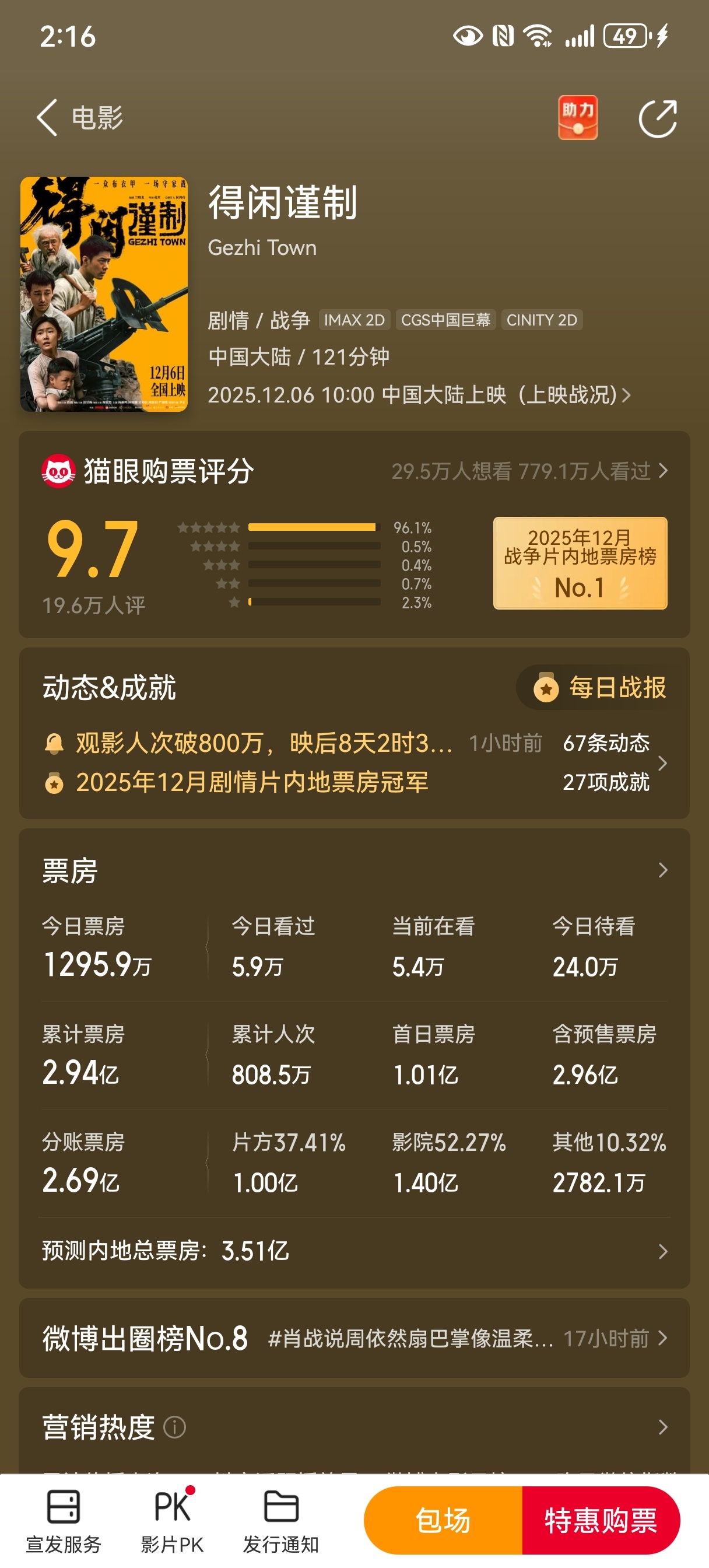 《得闲谨制》今天要破3亿了,小成本,口碑又好,映前一周空降定档,已经完全超出预期了