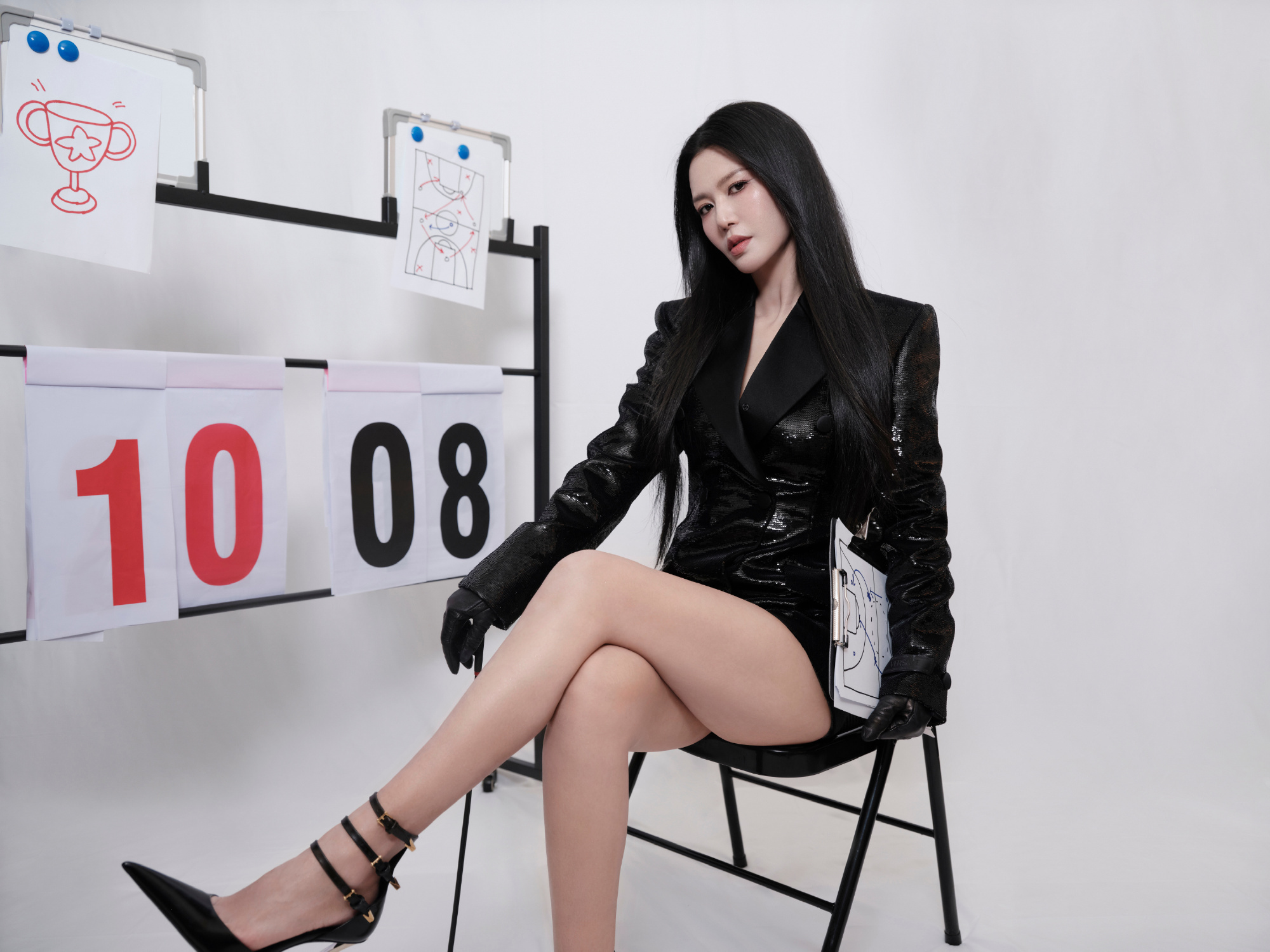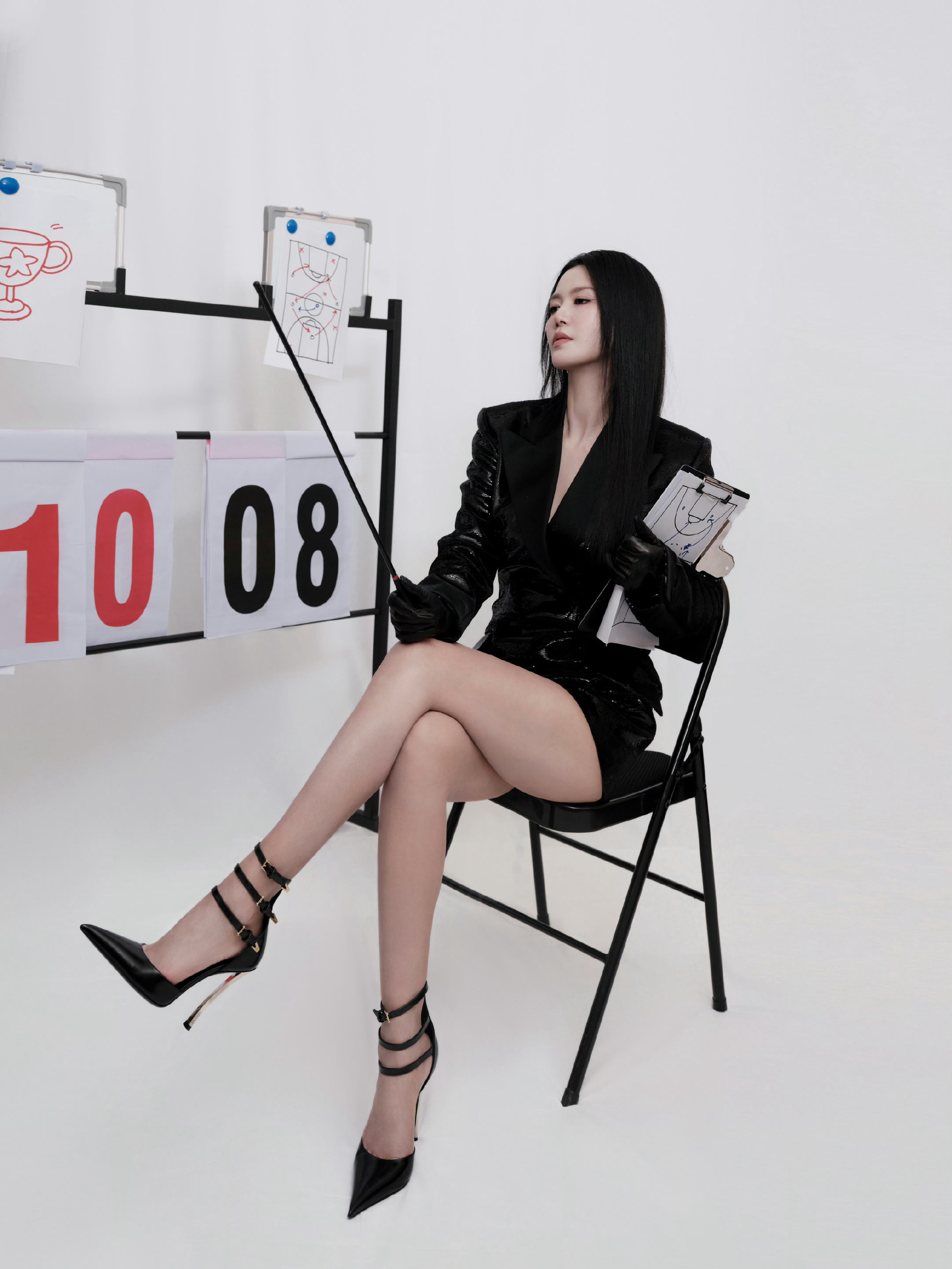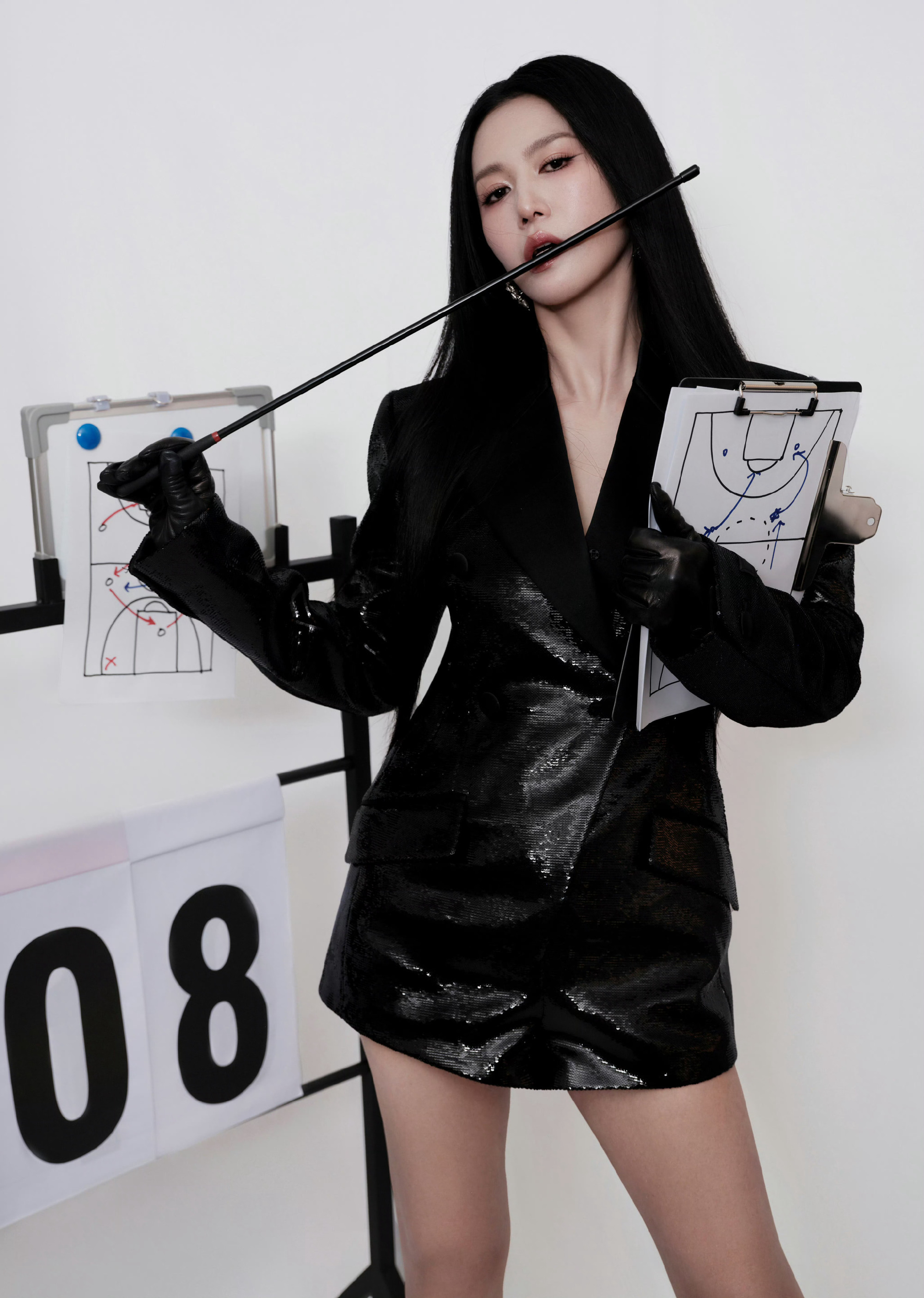 谭维维,黑色西装短裙,冷酷迷人。谭维维