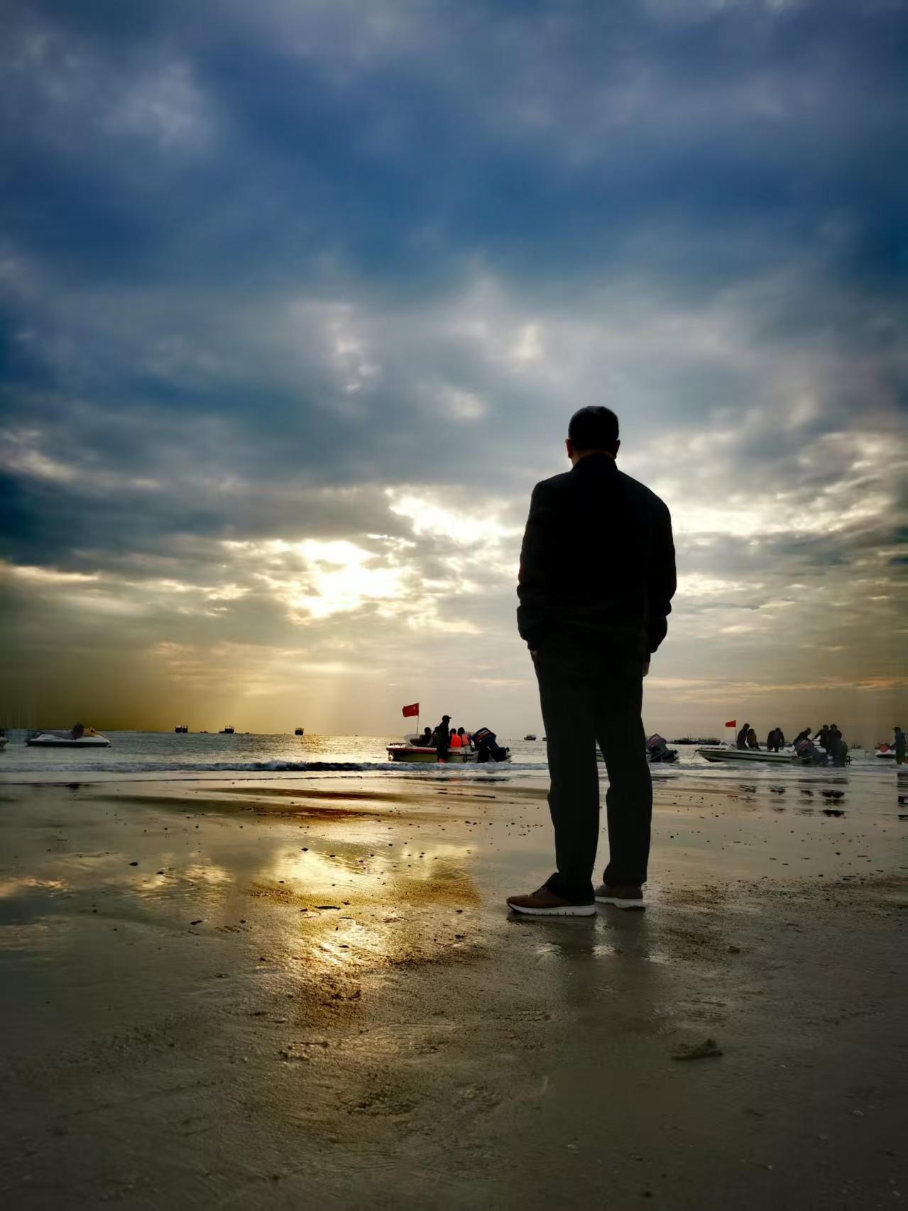 《北海“天下第一滩”》 银沙如练卧北川,碧浪扶波欲接天。 最是清风知客意,潮头托起人间仙。