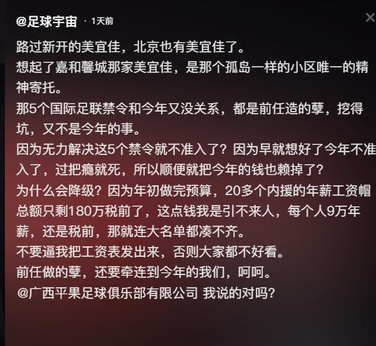 最近几天广西平果讨薪讨债的、揭露历史问题的、聊俱乐部准入方案的都集中爆发了,今年