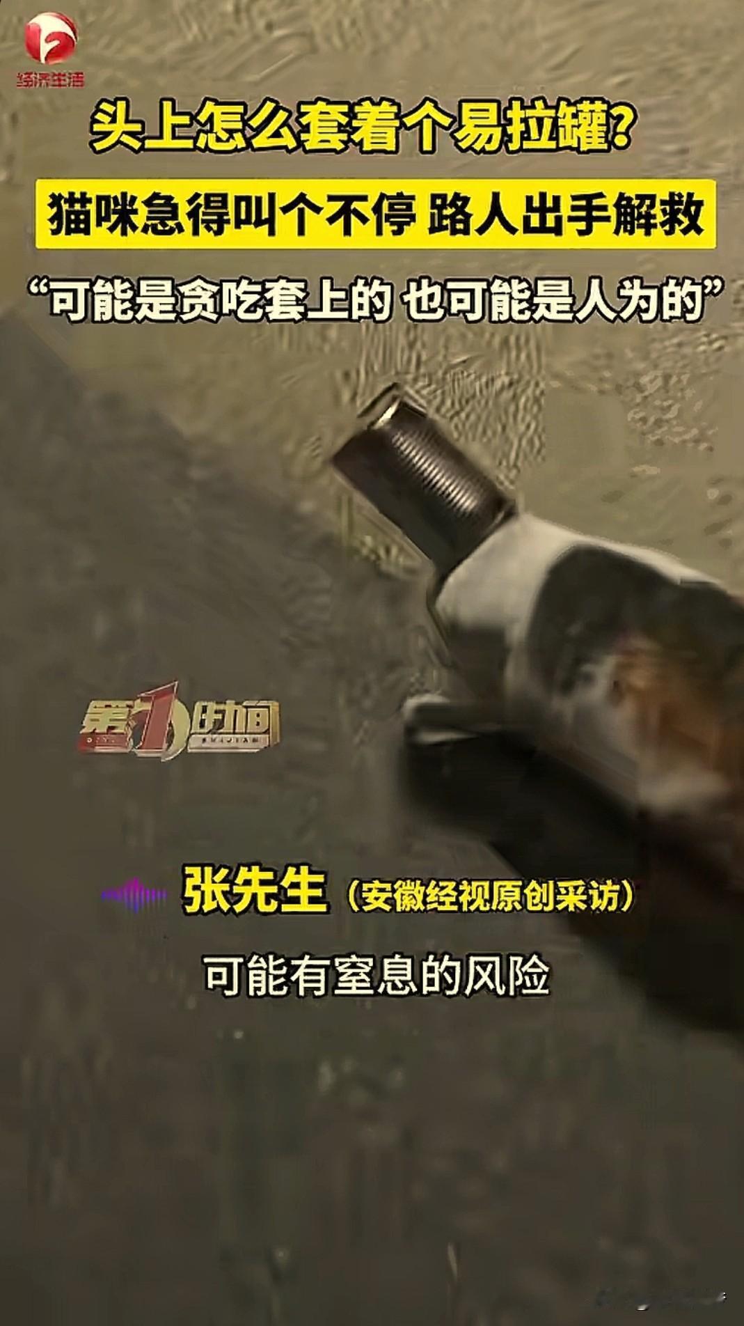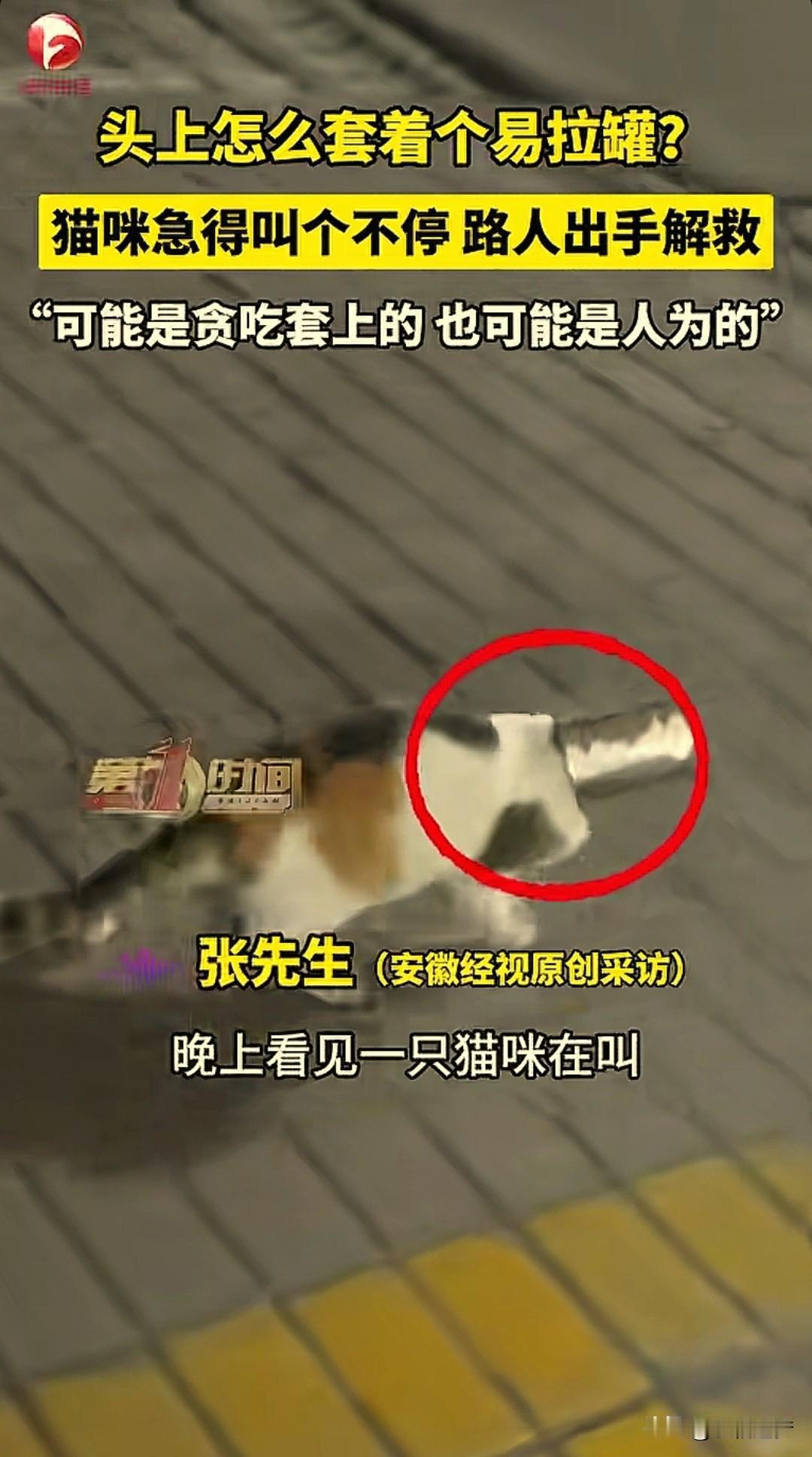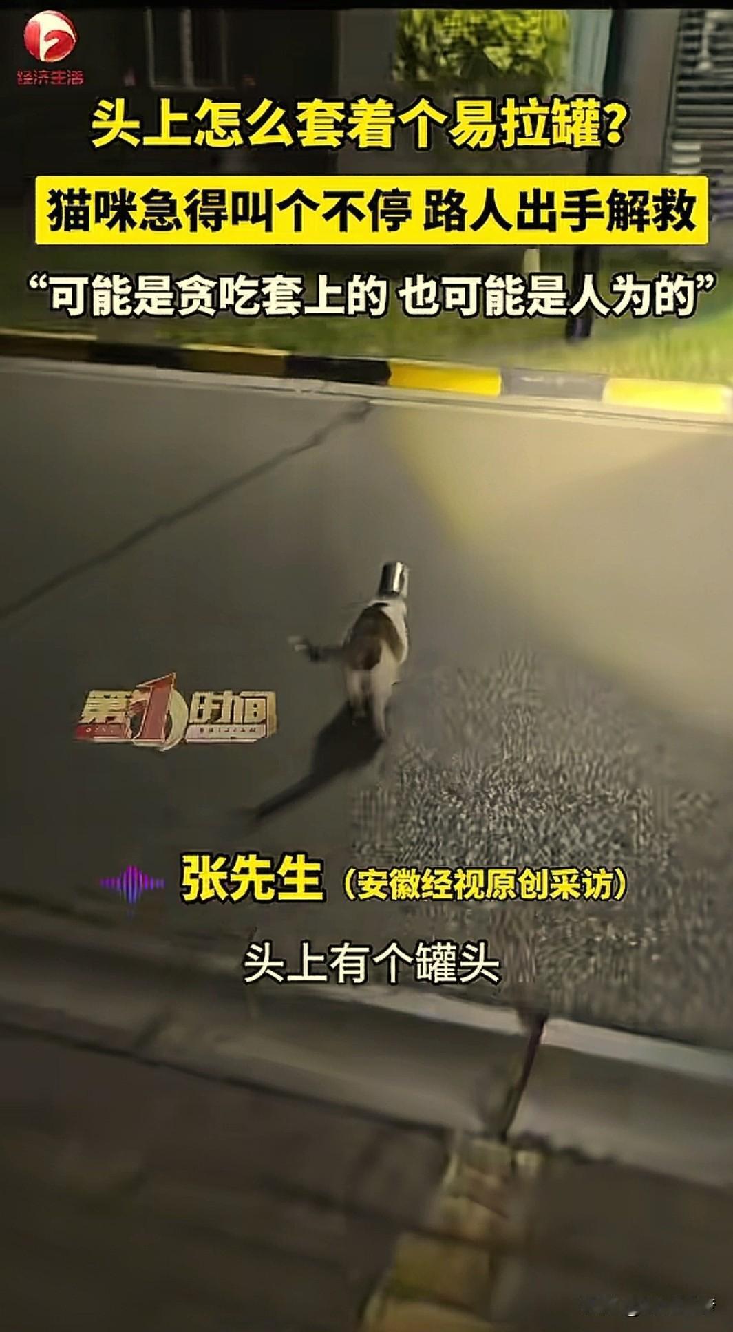江苏苏州,一男子晚上遛弯时,忽然听到有猫咪急切的“喵喵”直叫。男子走近一看,傻眼了:小猫的头不知道什么时候,竟然被套了一个易拉罐!它正像个无头苍蝇一般慌不择路地瞎跑,既拔不下来,也甩不下去。 都说小猫很聪明,这种究竟是自己不小心钻进去的,还是别人有意为之,就不得而知了。 根据安徽经视12月14日报道,这件离谱又让人觉得可怜的事,就发生在一条小路附近。 男子透露,当时看到小猫边跑边求救,看得出来,易拉罐镶嵌的特别紧,小猫想要挣脱,根本做不到。 这让他心里特别不是滋味,卡住头是一方面,重要的是,会有窒息风险。尤其是小猫像个无头苍蝇一样,横跨小路也很危险。 于是他赶紧追上了猫咪,按在地上后,一点一点帮小猫把易拉罐拽了下来,随后,猫咪得到了解救,飞快的跑开了。 说真的,看完这事心里挺不是滋味的,真替小猫捏了一把汗! 不管这罐子是小猫嘴馋钻进去的,还是有人故意恶作剧,都太让人心疼了,幸运的是,遇到了热心的男子帮忙解围,不然真的凶多吉少。 在这里也提醒大家,以后扔垃圾都能多注意点,咱就是说,处理废弃容器的时候多上点心,别让这些易拉罐之类的,伤害到小生命,流浪猫其实活下来也十分艰难了,也为每一个愿意伸手帮小忙的好心人点赞!