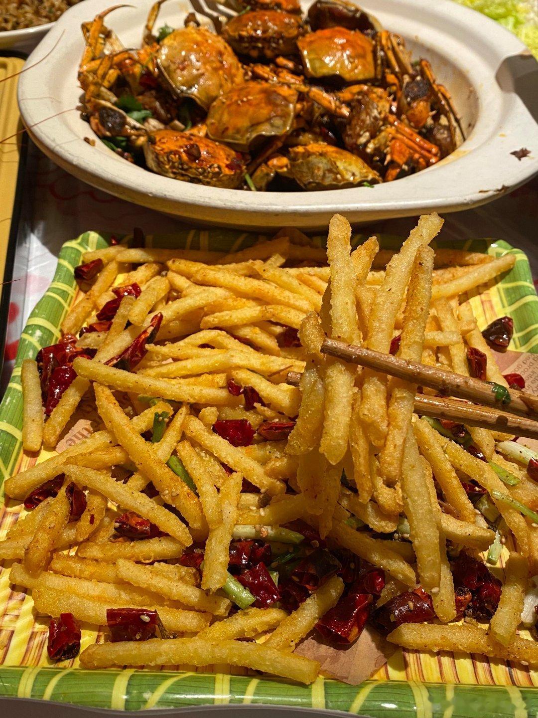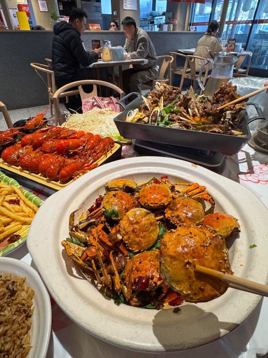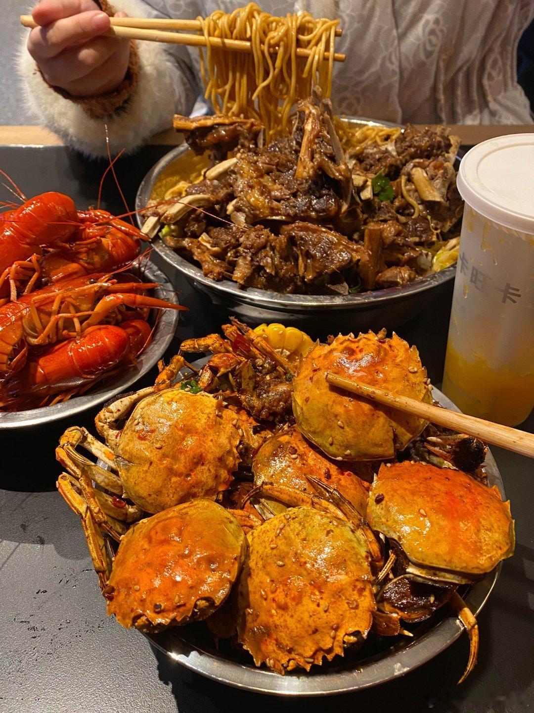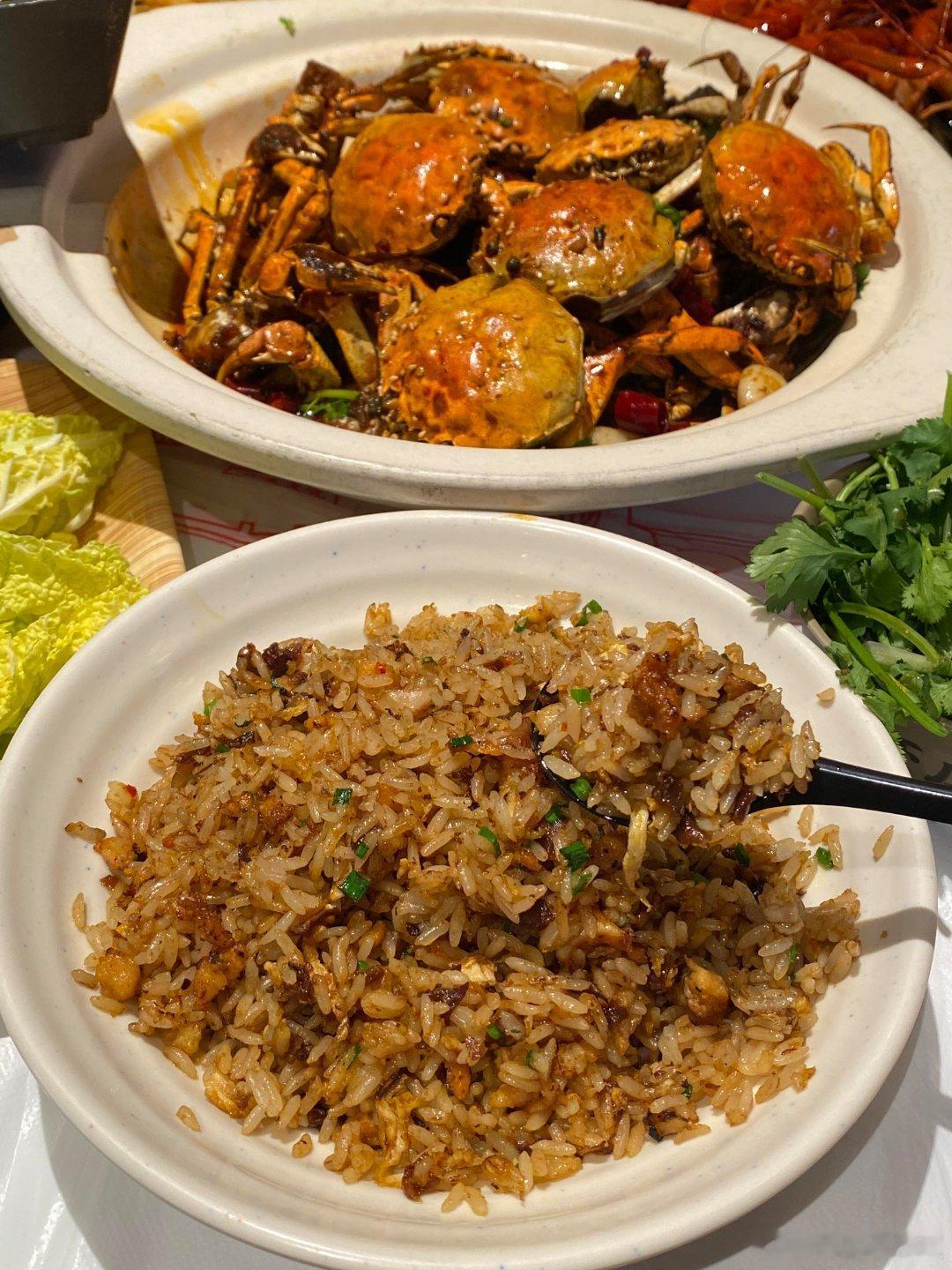 一降温就想搞点羊蝎子锅➕粉丝合肥人在这块真的拿捏了!!!一大锅的羊蝎子肉啃的好过瘾,涮点粉丝好入味啊…✔️还吃了香辣🦀,蟹黄蟹膏好满啊,吼香辣入味…✔️清蒸小青龙肉蛮新鲜的,能吃到丝丝甜口~✔️藕条炒饭也是每次都点的~