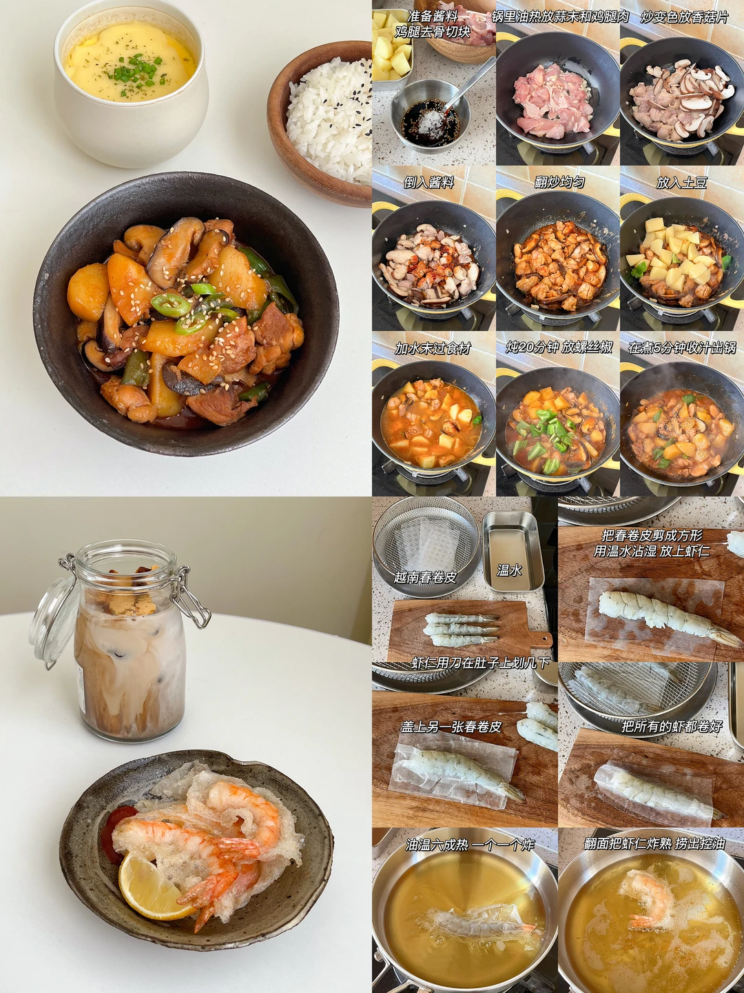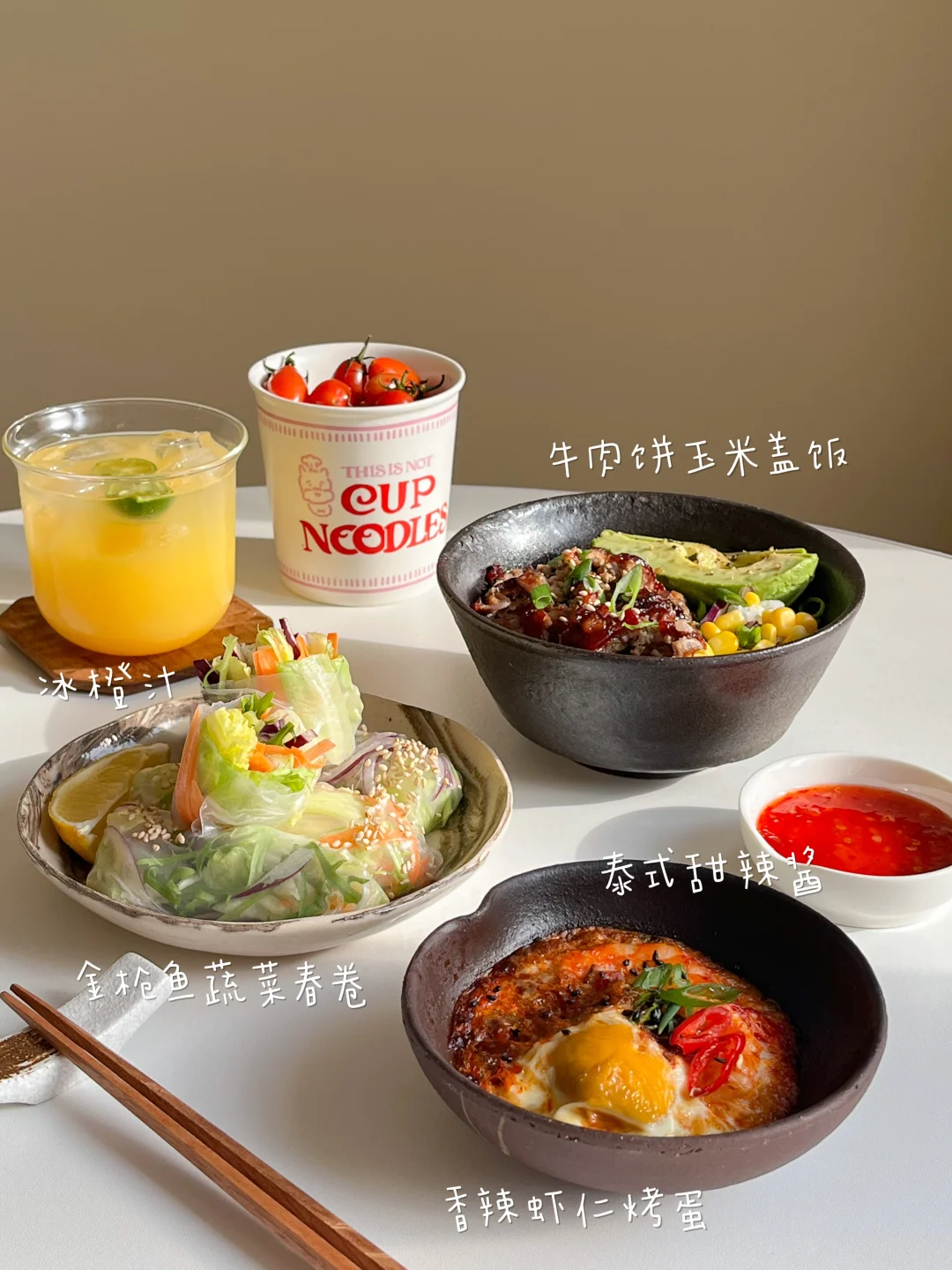 12月已经过半啦 ☃️ 最近吃了很多喜欢的食物 天冷要多吃点饭 才能有力气过冬呀🍞 韩式辣炖排骨🥩 滑蛋煎饺🥟 凉拌泡菜豆腐🫘 巧克力牛奶烧仙草🍫 牛肉饼玉米盖饭🍱 金枪鱼蔬菜春卷🫔 香辣虾仁烤蛋🍳 冰橙汁🧃 咸蛋黄焗鸡翅🍯 肉末茄子🍆 玉米饭🍚 番茄白菜汤🍅 韩式辣炖鸡块🍗 芝士玉米蒸蛋🧀 春卷皮炸虾🍤 卡美罗焦糖拿铁☕️