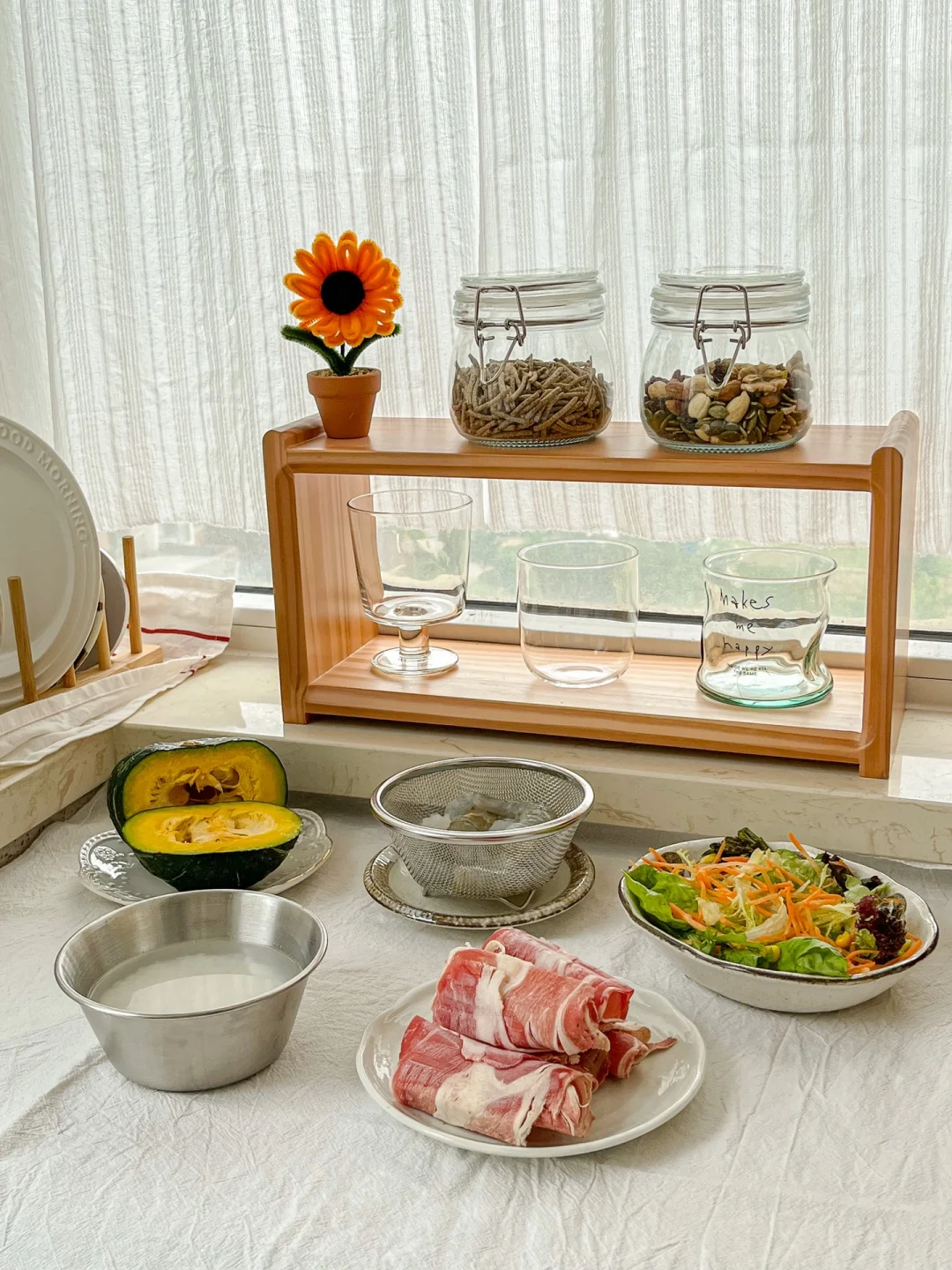 “忙起来的日子也别忽略了生活,煮了爱吃的菜,还用心搭配了颜色。健康不是第一,而是唯一!所以好好吃饭,保重身体。”
