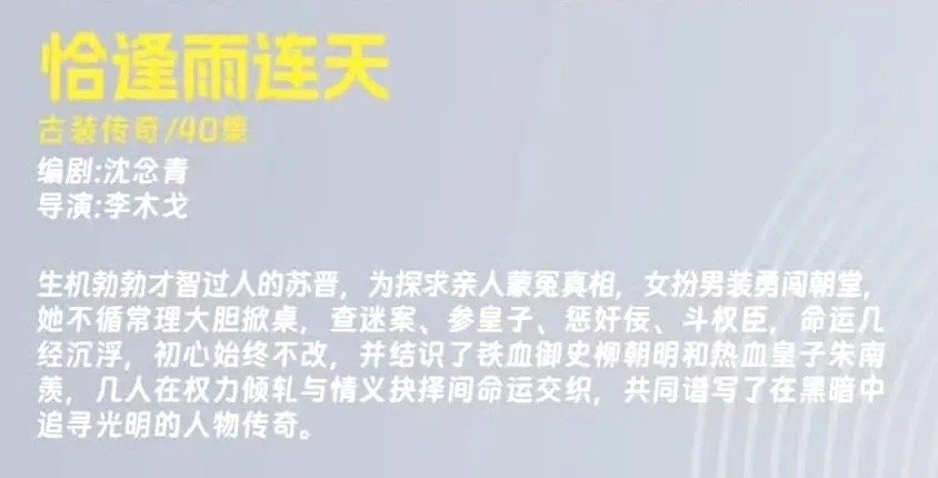 顶刘首部一番男主剧古装电视剧《恰逢雨连天》明年开机🍉领衔主演:刘宇宁