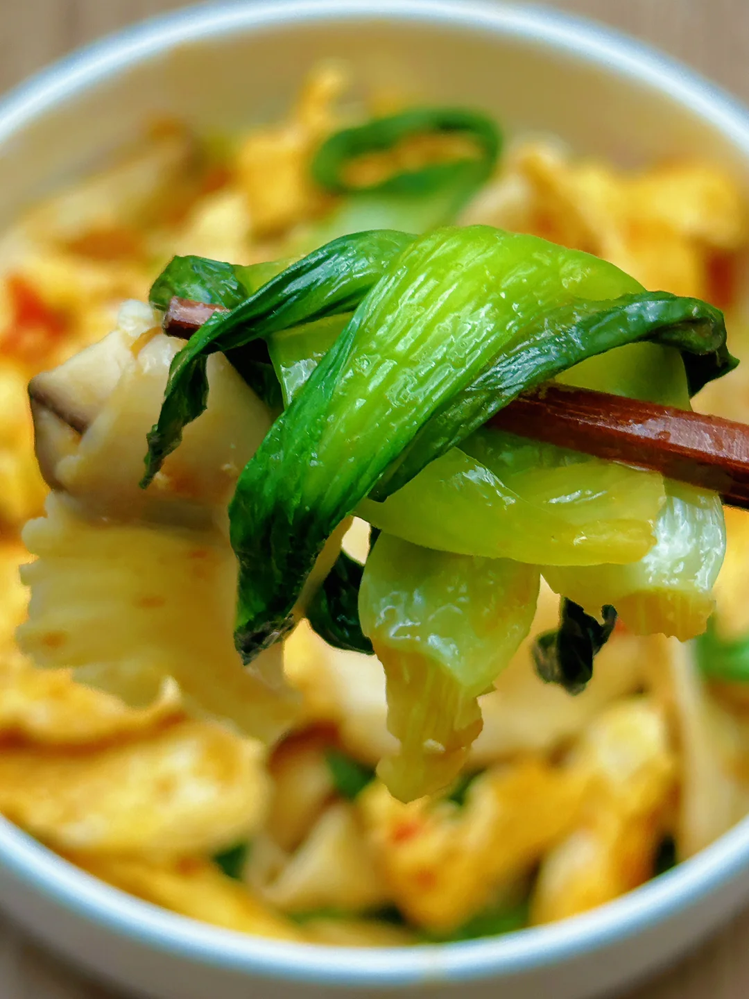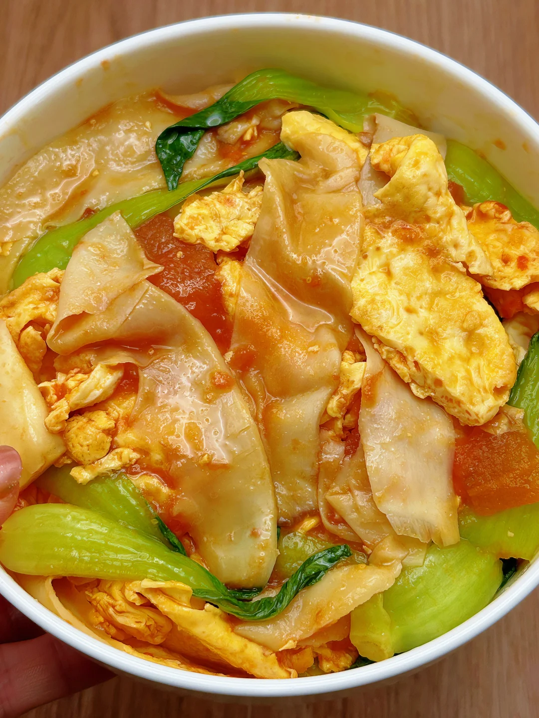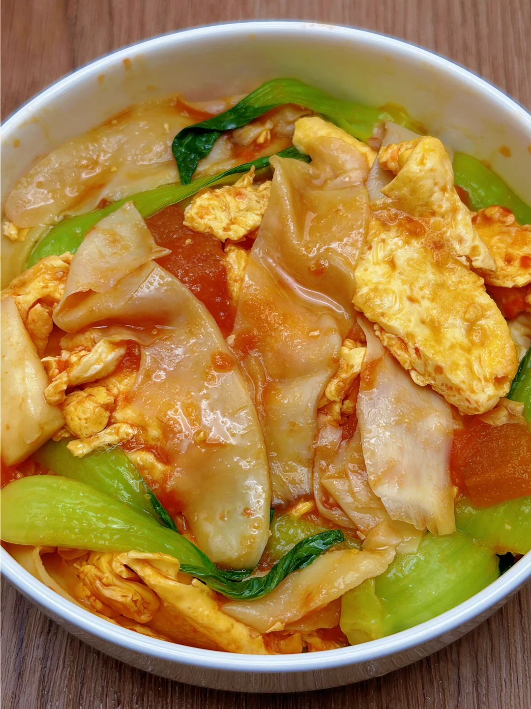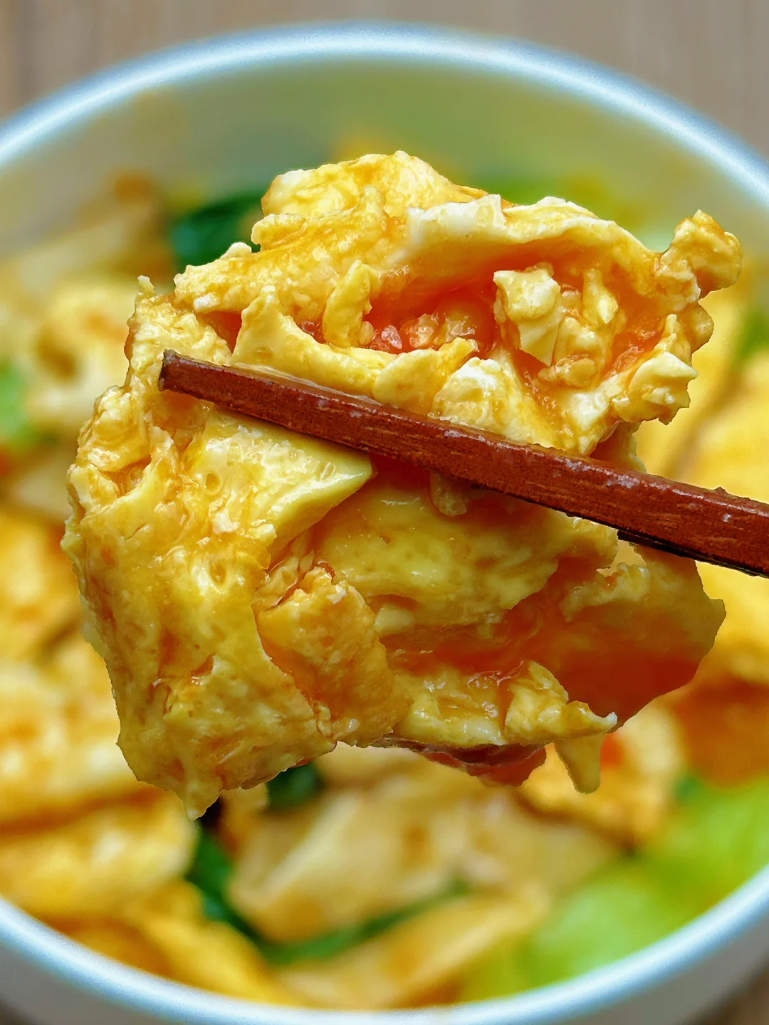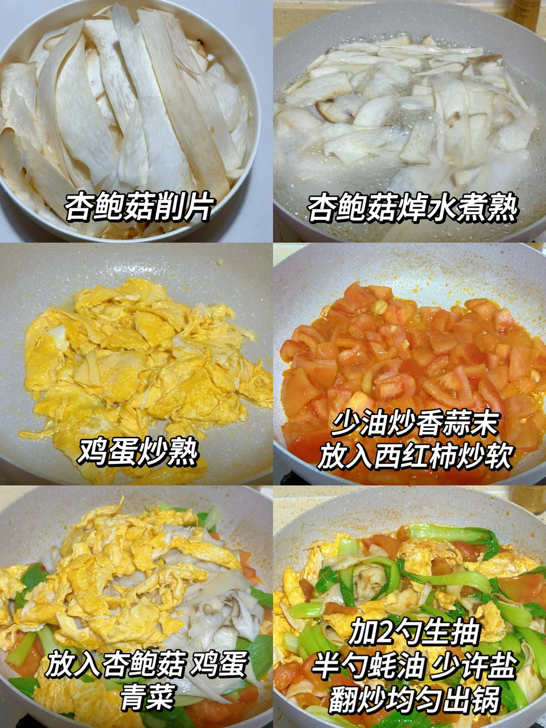 番茄杏鲍菇炒鸡蛋,好好吃啊姐妹们,真的好好吃哇…杏鲍菇、鸡蛋裹满番茄的汤汁,一口下去停不下来,番茄汤汁浓郁,一大盘才200多大卡,吃完满满的饱腹感,巨巨掉秤,做法简单,姐妹们一定要去试试! 🥗食材:杏鲍菇、番茄、鸡蛋、青菜 🥘做法:如图所示~ 1️⃣杏鲍菇削成长条,水开放杏鲍菇焯水烫三分钟,过凉水再挤干水分 2️⃣两个鸡蛋煎熟备用,番茄炒出汁,放入杏鲍菇、鸡蛋和青菜煮熟,加2勺生抽、半勺蚝油和少许盐,翻炒均匀即可