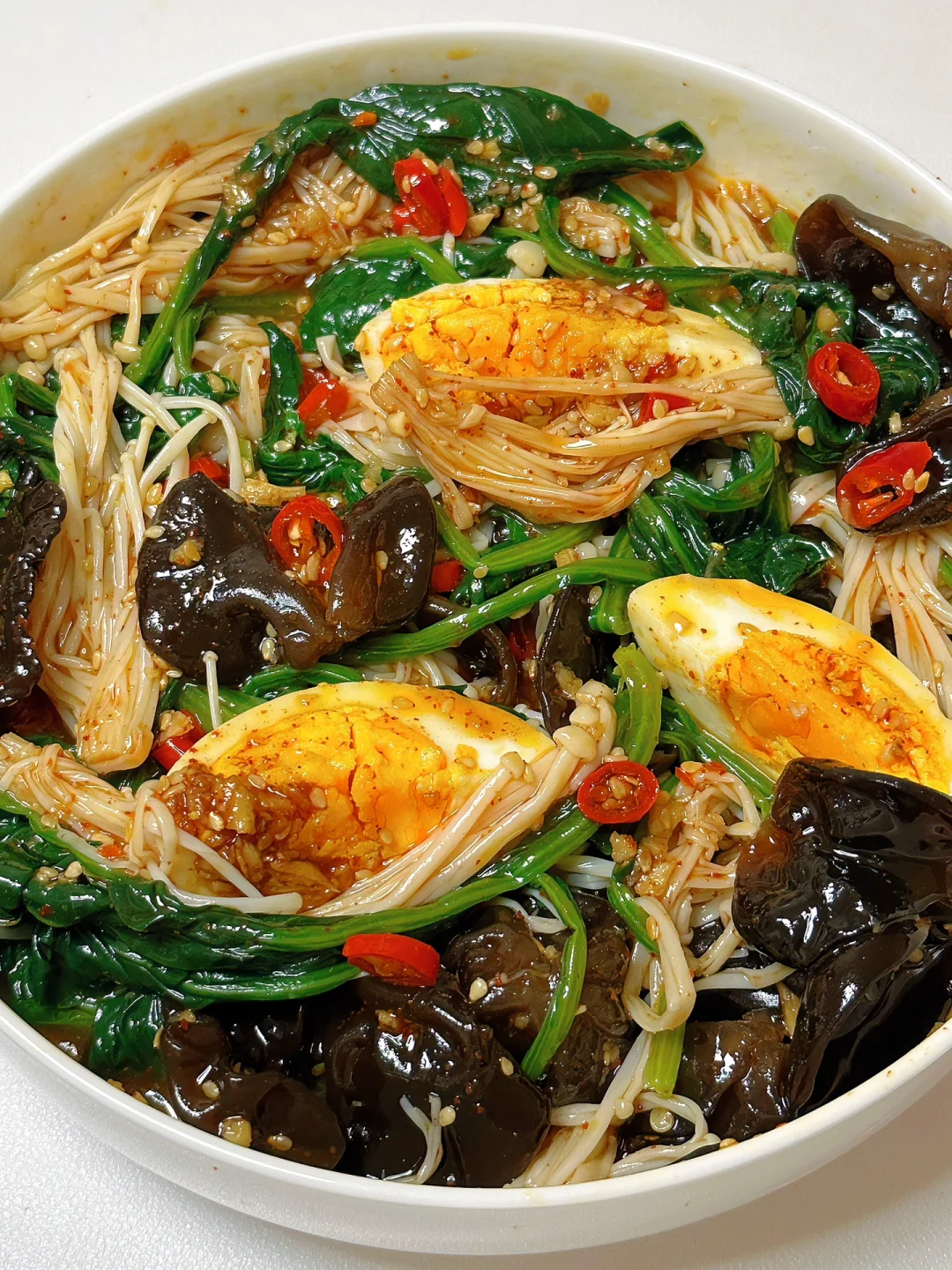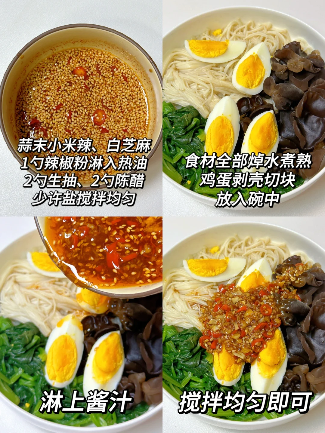减脂餐吃这个菠菜木耳拌金针菇真的好吃又低卡!![哇R]惊艳到我了![喝奶茶R]好吃到不行,还掉秤~吃起来酸辣过瘾,一大盘饱腹感满满! [暗中观察R]做法简单…新手不翻车!姐们们快安排起来~ [种草R]做法:如图所示 [种草R]酱汁:碗中放入蒜末、小米辣、辣椒粉➕1勺白芝麻,淋上热油(橄榄油)➕2勺生抽➕2勺陈醋(或者香醋)➕少许盐搅拌均匀即可 [向右R]更多的减脂餐在往期笔记!