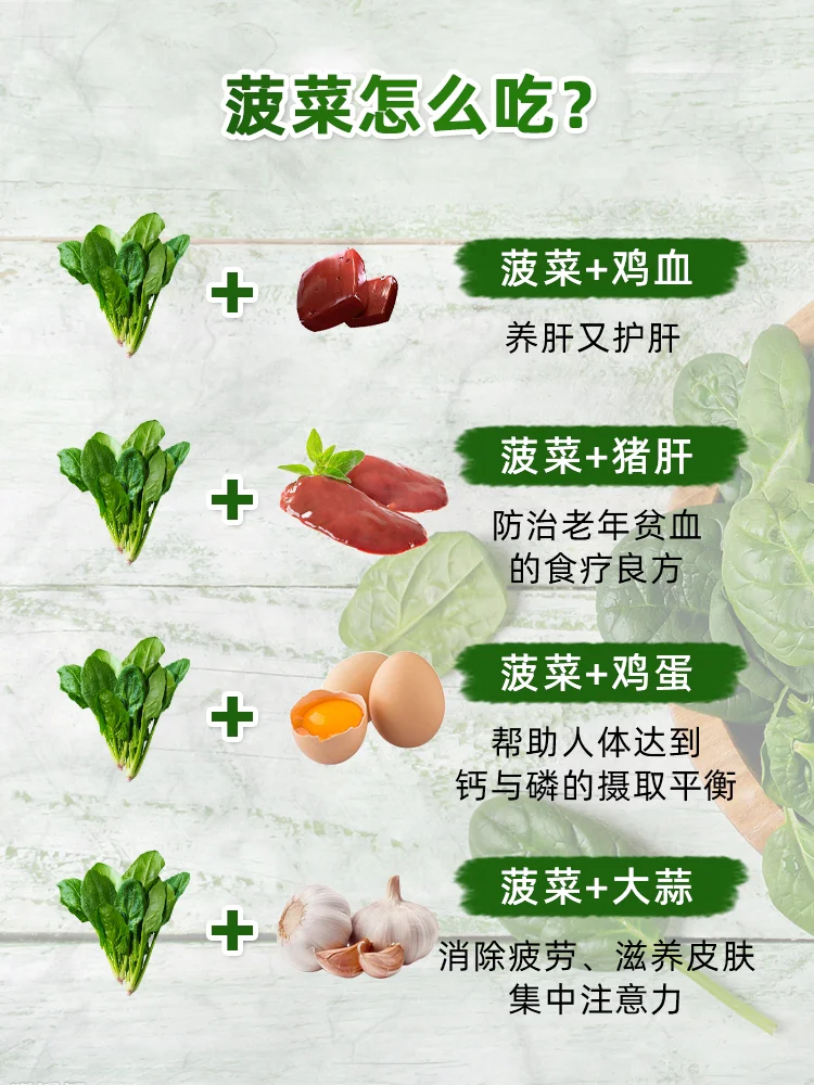 菠菜+鸡蛋=帮助人体达到钙与磷的摄取平衡