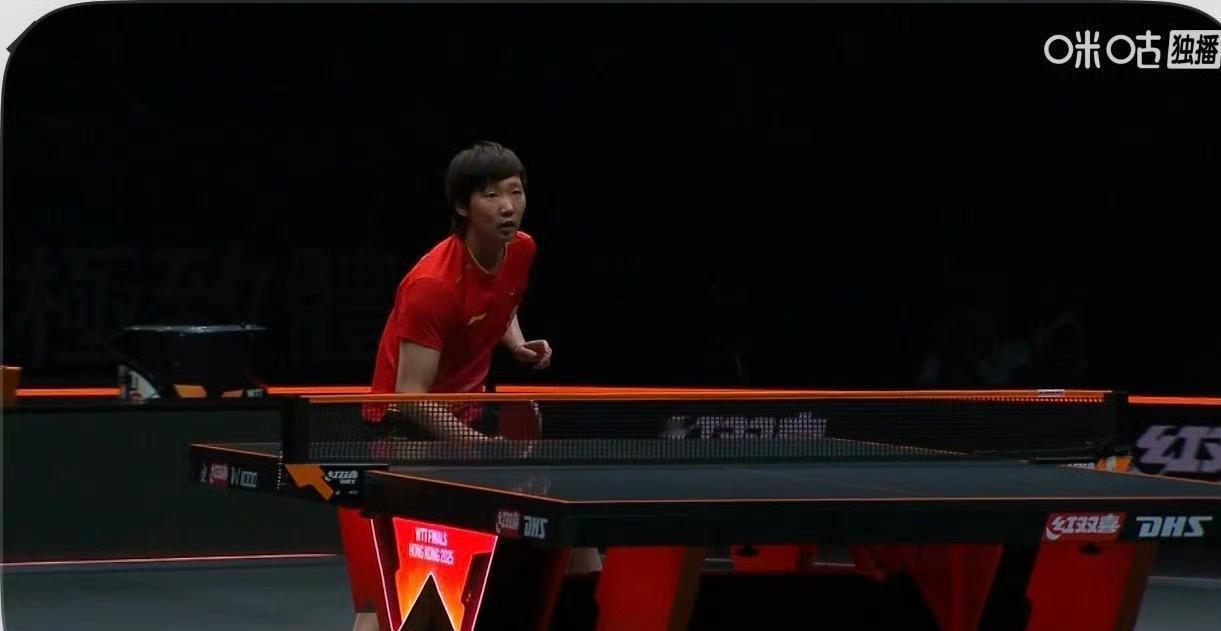 第二局开局曼昱5-1领先! 曼昱打球已经到了一个境界了,击球的质量和速度太高了,蒯曼几次都无法应对。 刚才第一局王曼昱🇨🇳11-7先胜了蒯曼🇨🇳,此刻第二局蒯曼改变了战术,连赢6分,比分来到了8-8! 这是2025WTT香港总决赛女单决赛。 第二局王曼昱🇨🇳8-11,蒯曼🇨🇳坚决地扳回来了[奋斗]! 大比分1-1平!