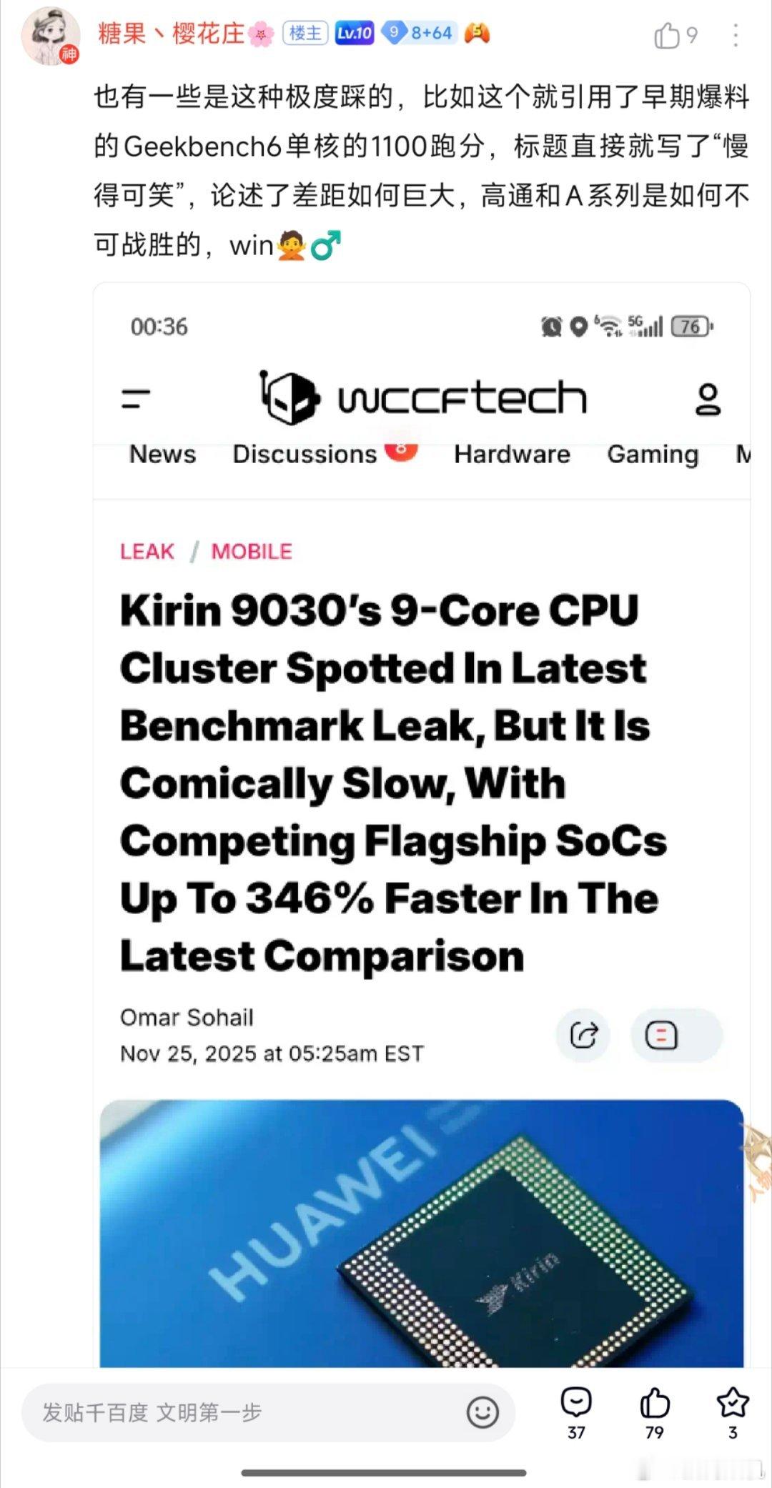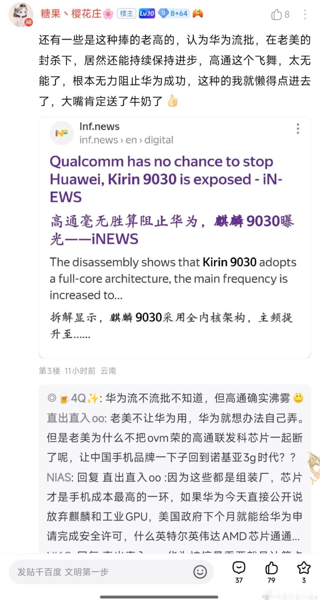 几个数码外媒评价麒麟9030。有拿着早期跑分说真垃圾;也有觉得进步太大,高通吃枣药丸;还有的分析工艺成本不低,华为可能在亏本卖芯片。总之看下来还意外的公正?
