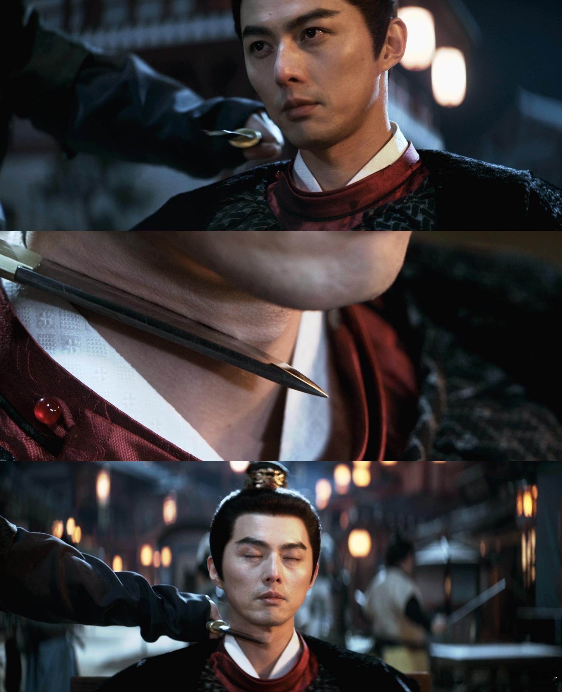 叶祖新新剧刀又架脖子上了 叶祖新把顾玉的“危局贵气”演活了!刀都贴皮肤了,颈线挺得笔直,那份宁折不弯的劲儿,比红衣储君时更戳人~