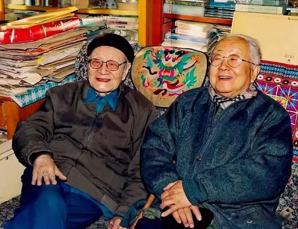 北京师范大学中文系的两位传奇教授钟敬文与启功的合影。钟敬文生于1902年,启功生于1912年,两人相差9岁,钟敬文常称启功为“小老弟”,对他爱护有加,经常“批评”他“不务正业(指写字)”;而启功对钟敬文更是极为敬重。他们共事五十多年,建立了深厚的友谊,是一对活宝。