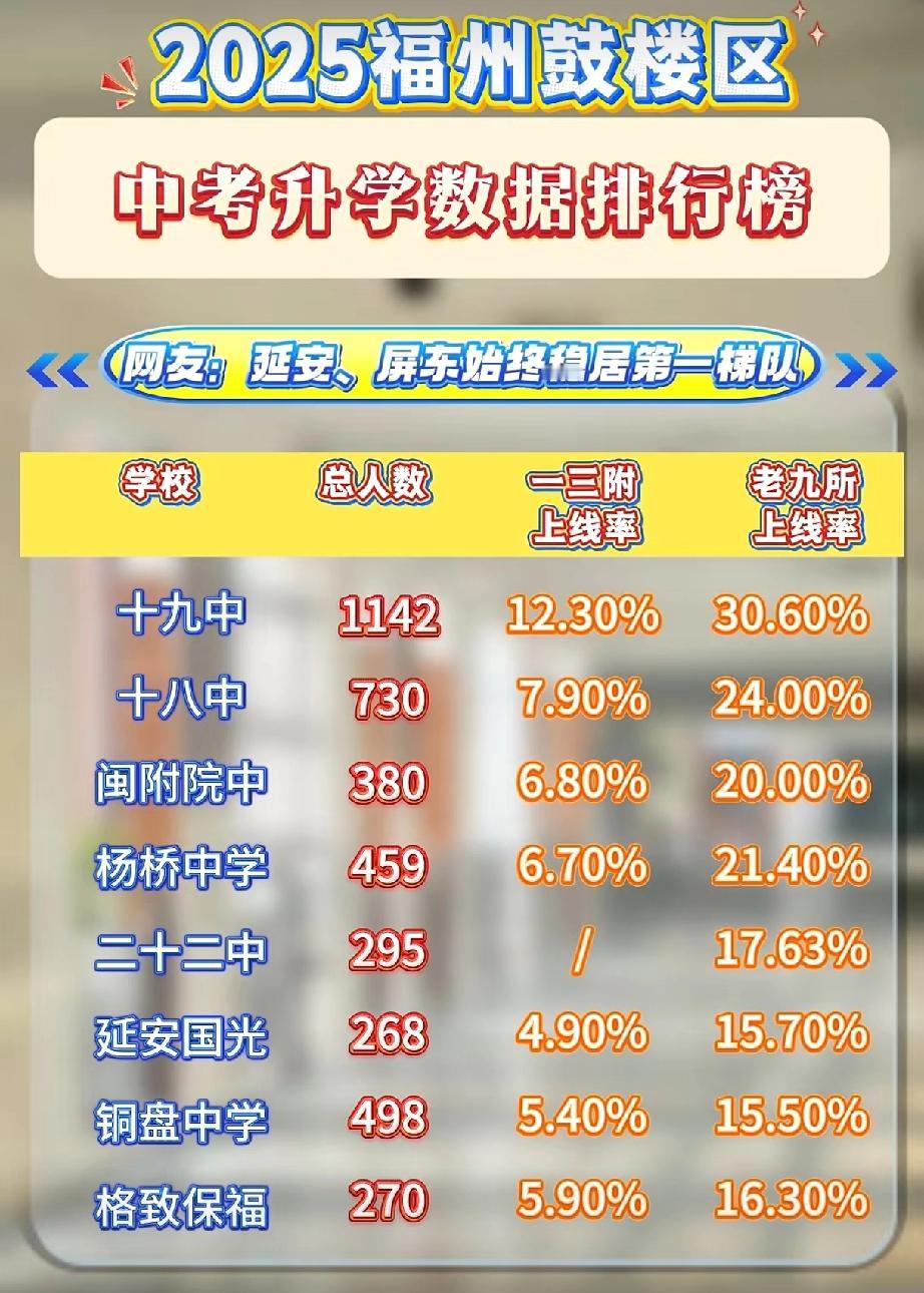 福州鼓楼区中考升学数据排行榜,延安中学pk屏东中学稳居状元、榜眼,老三:十九中,