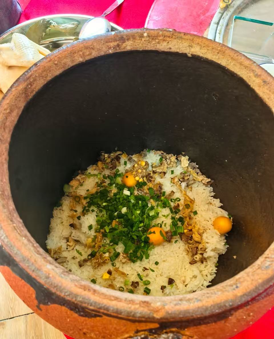 2️⃣.瓦缸鸡饭,鸡油在米饭上,米粒都裹满了鸡肉和鸡蛋黄,超香。