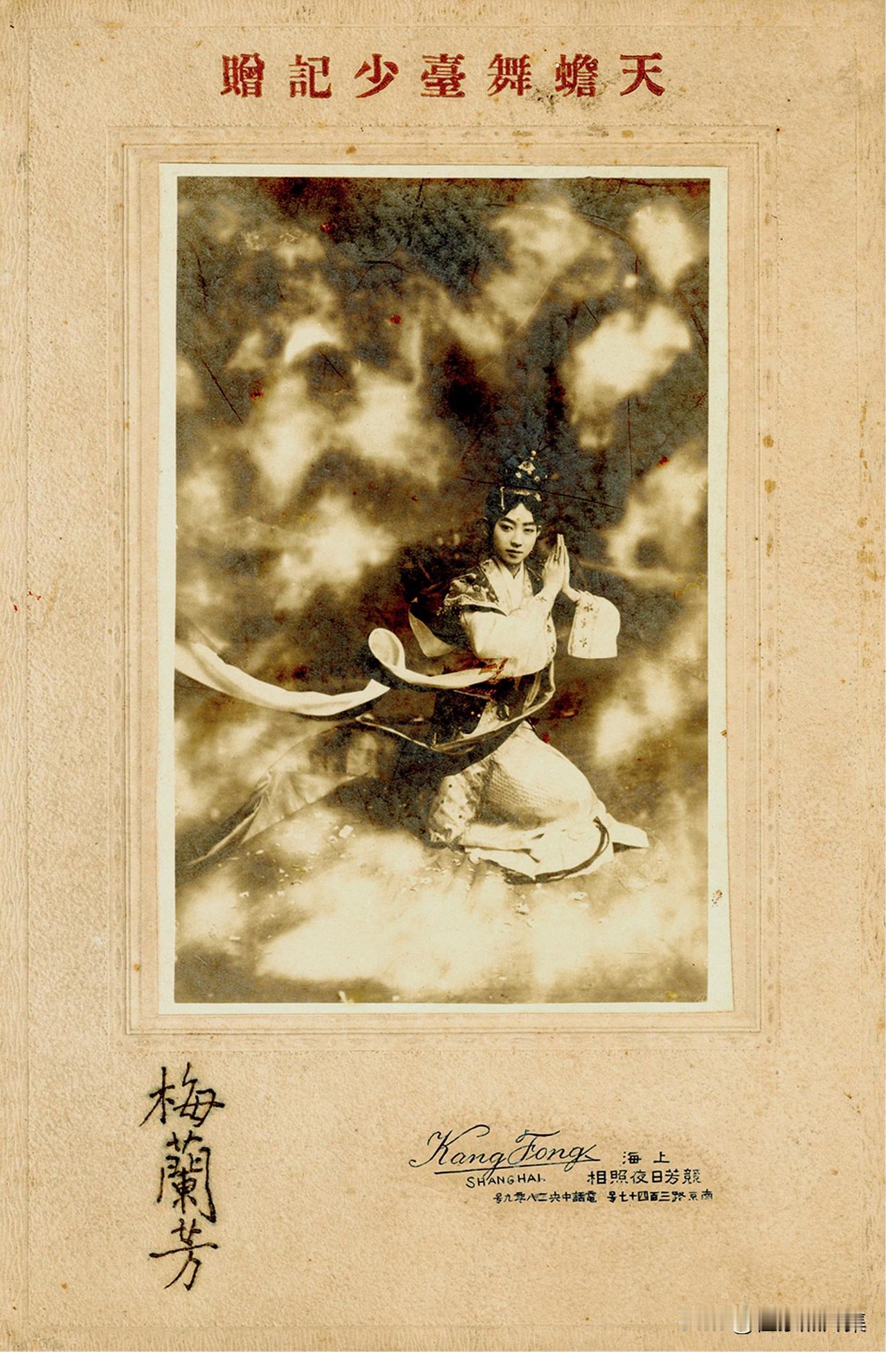 1917年12月,梅兰芳在北京吉祥园首演的古装神话歌舞剧《天女散花》的照片。该剧