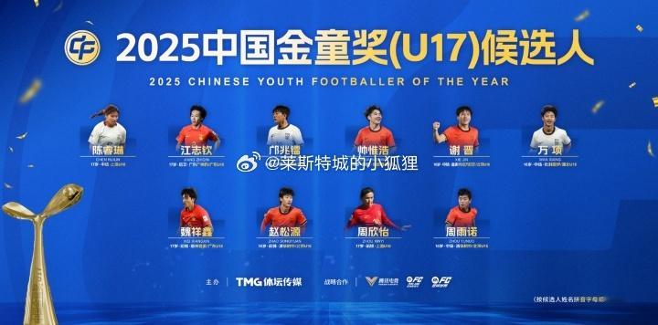 中国金童奖候选人:王钰栋、蒯纪闻、徐彬/邝兆镭、帅惟浩、魏祥鑫分别入围(U21/U17)留洋球员动态热点解读中超联赛