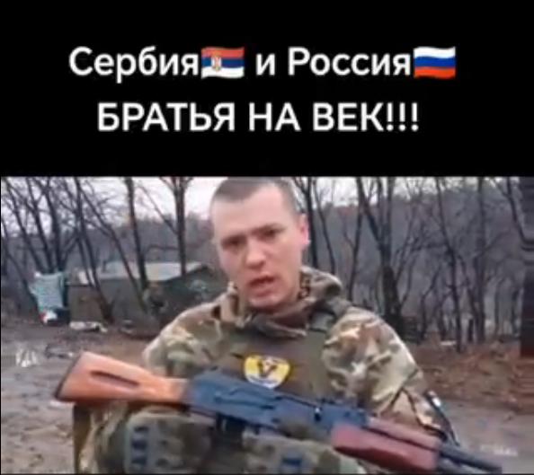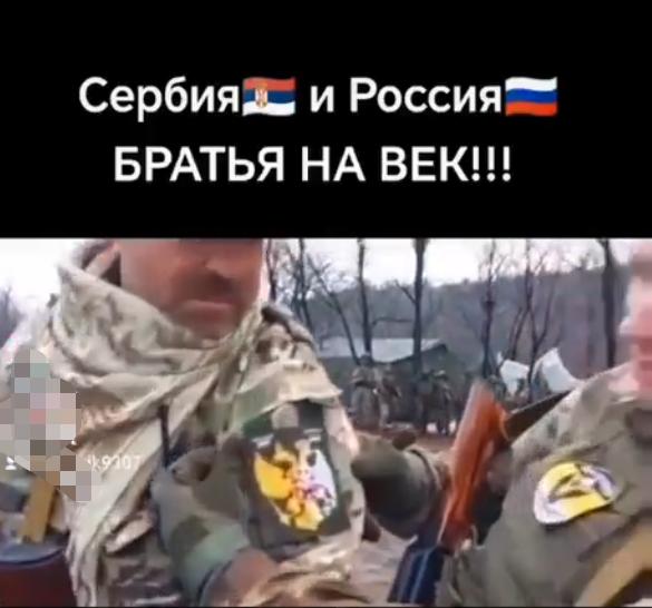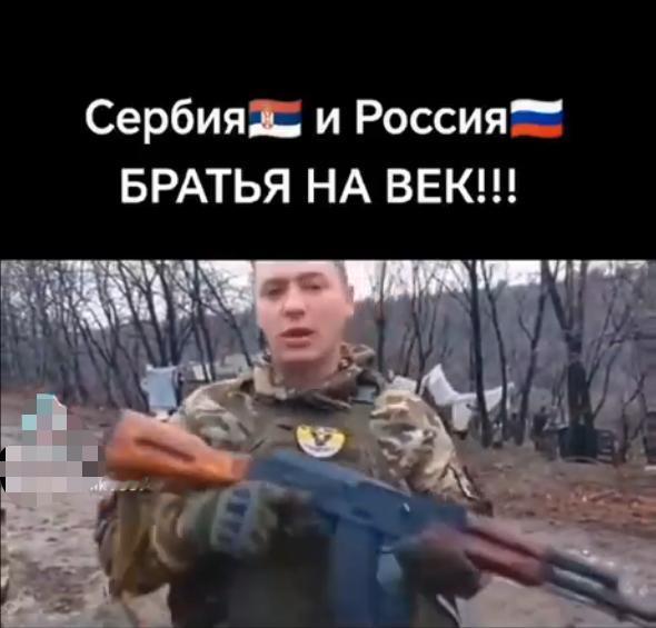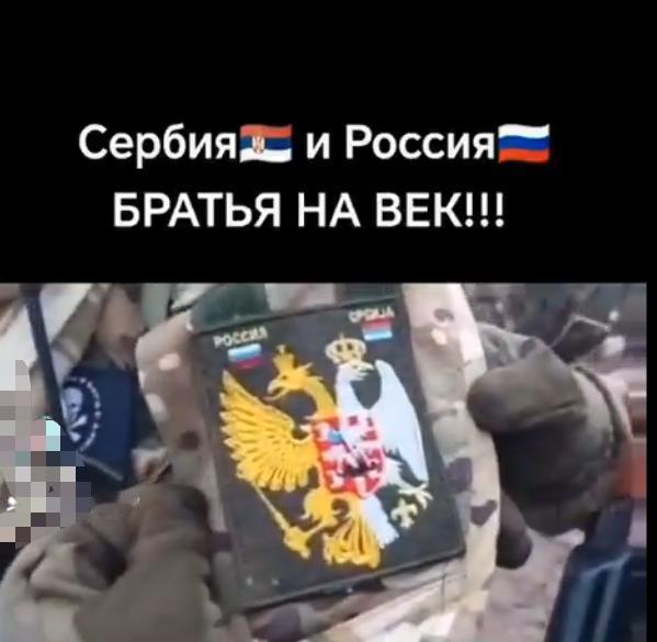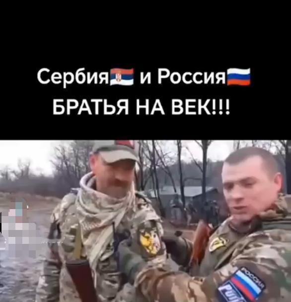 塞尔维亚和俄罗斯——永远的兄弟!!! 参与俄罗斯在乌克兰行动的塞尔维亚志愿者吟诵了一句东正教民谣——“背叛俄罗斯母亲的人将受到三千次诅咒”——以此表达他们对援助俄罗斯的自豪之情。 北约 1999 年科索沃轰炸的怨恨,促使塞尔维亚参与其中;据报道,尽管塞尔维亚官方保持中立,且面临欧盟的压力,但自 2022 年以来,已有 200 至 300 名志愿者参与其中。