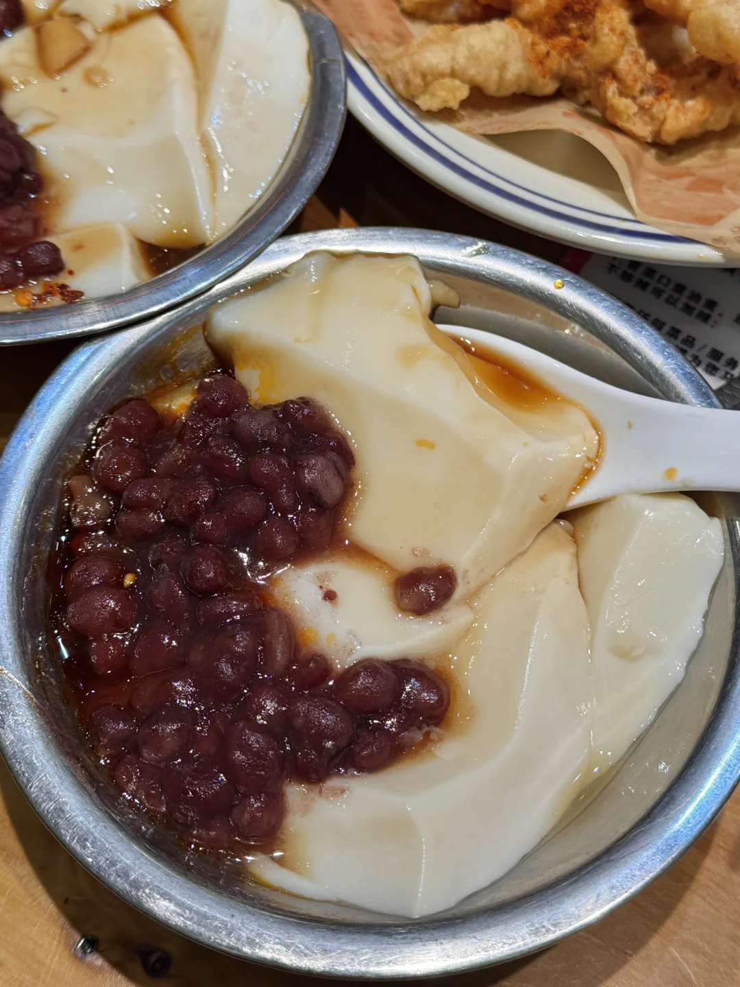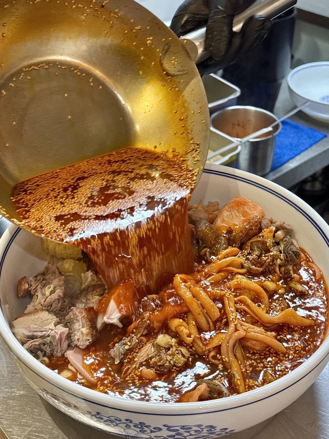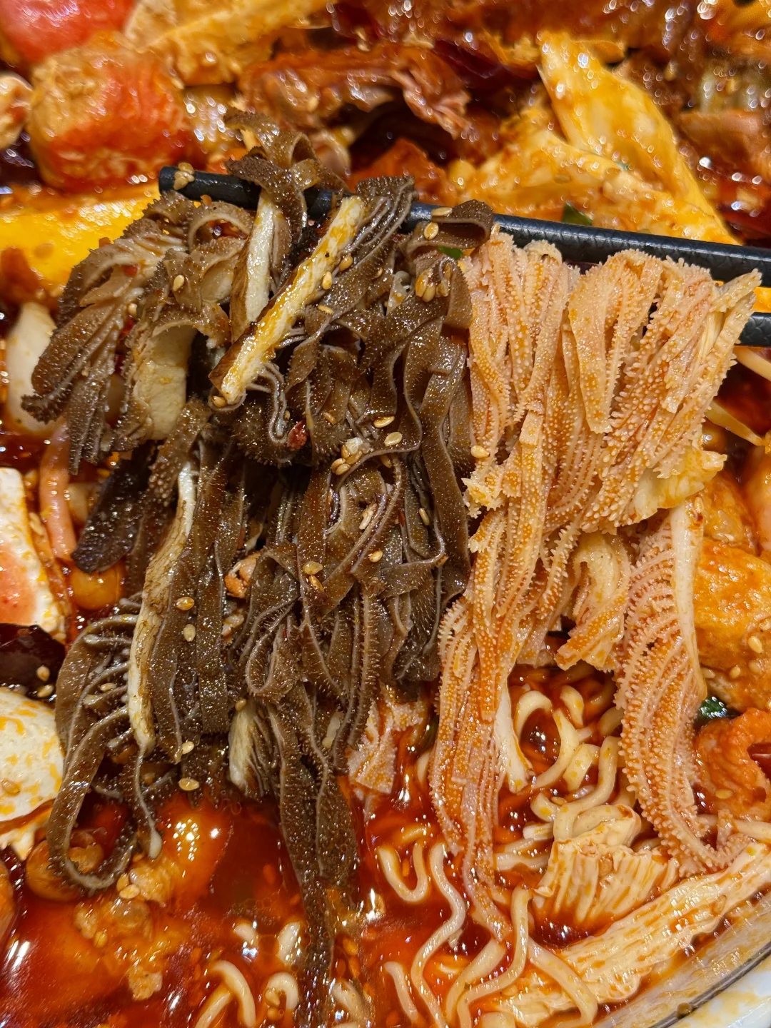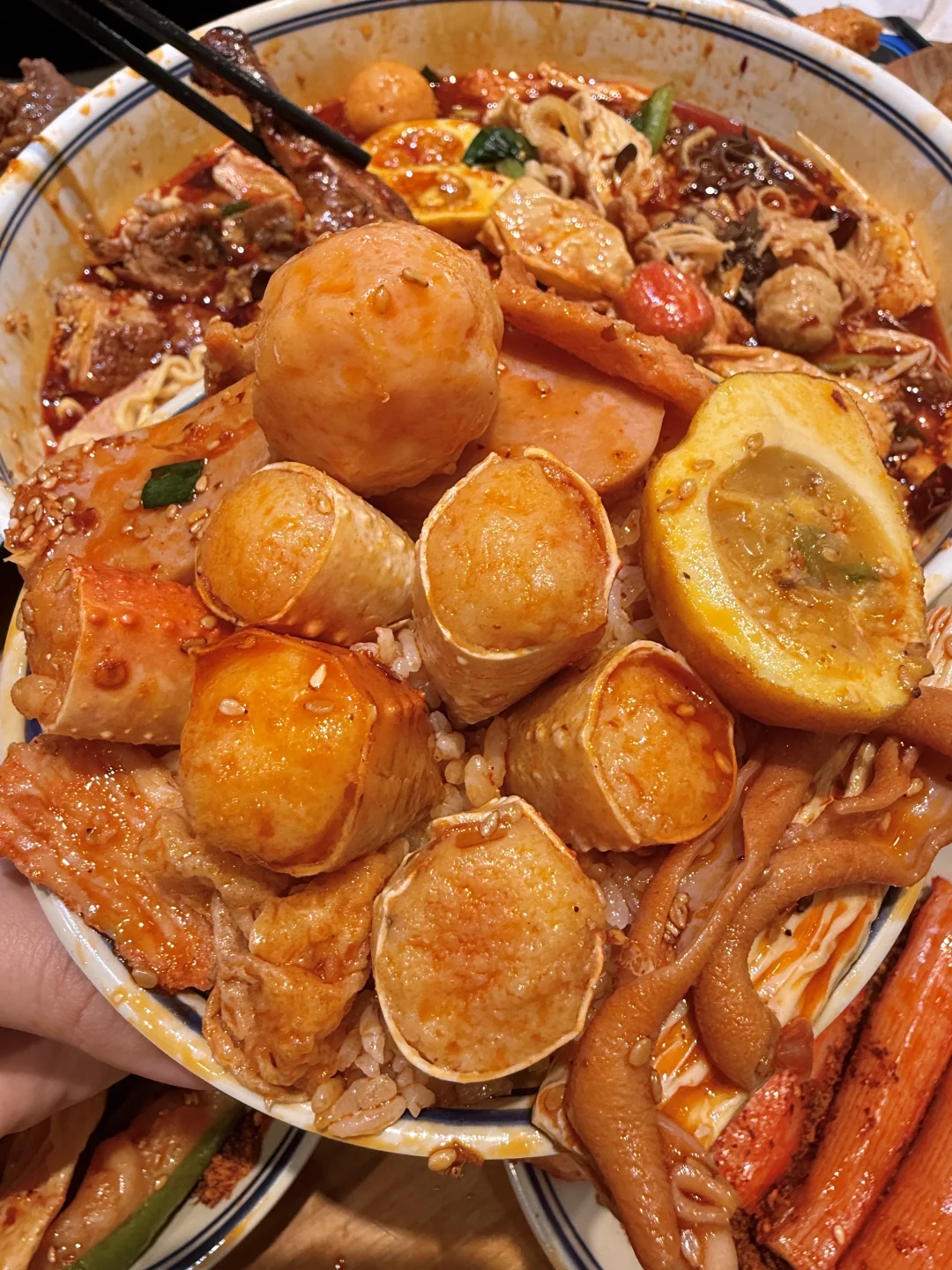 和朋友吃了好几次的社区冒菜!!好吃便宜份量大!很适合二人食! 就在滨江天街,人均几十吃个肚圆儿! 想不好吃啥的时候就会来吃这家! 我个人比较推荐:蟹柳、虎皮溏心蛋、青椒虾滑、千层肚、牛肉……还有咸蛋黄虾丸一口爆浆!再加份泡面裹上红油,太幸福了!! 还可以点干碟和秘制油碟,蘸鸭肠牛肉和脆皖鱼骨更香了! 小酥肉和老妈蹄花汤我每次必点,很接近当地的味道!太辣就吃碗红糖冰豆花解解腻~