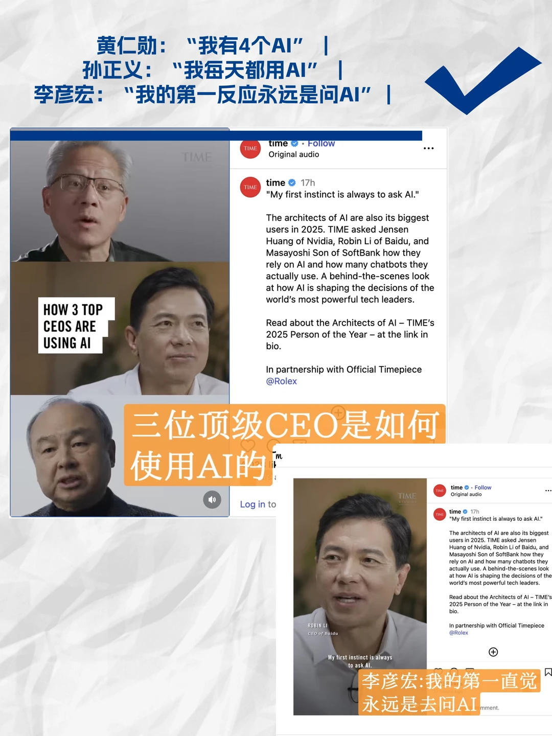 显然,李彦宏“My first instinct is always to ask AI”的习惯,与他倡导的“内化AI能力”理念一脉相承——这正定义着一种全新的工作方式。