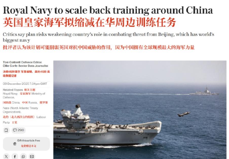 英国海军无可奈何宣布:将减少在中国周边的训练任务! 英国《每日电讯报》称,反对人士担心此举会减少英国面对中方的筹码。但支持人士则称,现实是英国海军根本无力承担这一角色。但凡有点实力,英国海军也不会放弃这么做。 英国舰队规模持续缩水:2014年还有65艘作战舰艇,如今只剩51艘;13艘23型护卫舰,现在仅剩7艘还能服役;所有老式两栖攻击舰全部退役,连新舰补充都遥遥无期。 问题出在哪?钱。英国国防部2025-26财年预算超支超过20亿英镑,财政压力巨大。第一海务大臣格温·詹金斯爵士最近公开警告:面对俄罗斯舰艇频繁逼近英国领海,海军已“疲于应对”,若再无额外拨款,连大西洋的防御都可能难以为继。 在这种情况下,把有限资源优先用于家门口的北约防务,而不是万里之外的西太平洋,就成了不得不做的选择。 当然,有人担心这会削弱英国“震慑中方”的能力。但仔细想想,英国在亚太本就没有常驻力量,偶尔派一两艘军舰来刷存在感,更多是个姿态,实际军事影响微乎其微。英国就是怕丢面子。 譬如,退役海军中将鲍勃·库林就激烈反对,称减少海外部署不仅削弱与盟友的协同能力,还会降低对全球贸易通道的影响力,长远来看,等于主动放弃“全球性海军”的地位。但那又如何呢?派的出军舰吗? 所以,别再幻想大英帝国还能靠两艘勉强能开的航母,在太平洋上耀武扬威了。