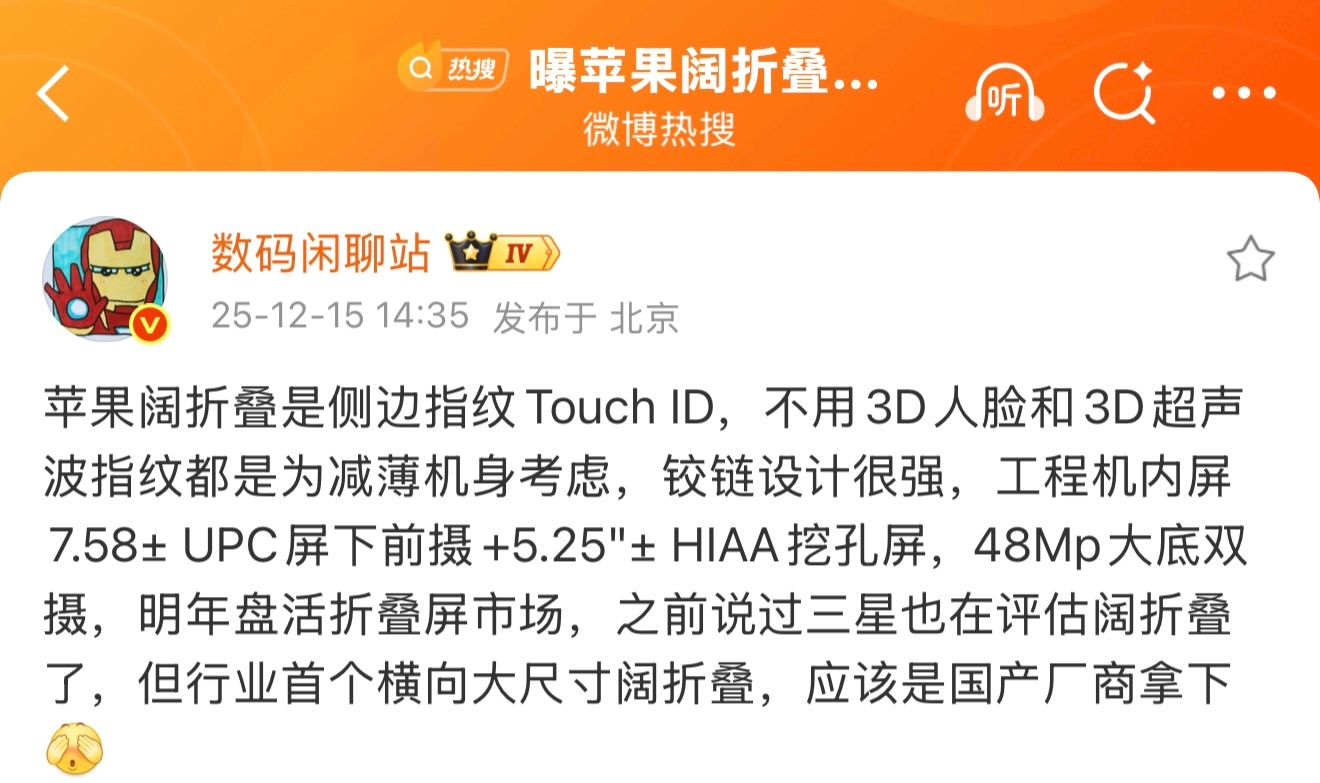 所以果子的阔折叠不是3D人脸和3D超声波指纹 竞争机会有多大?